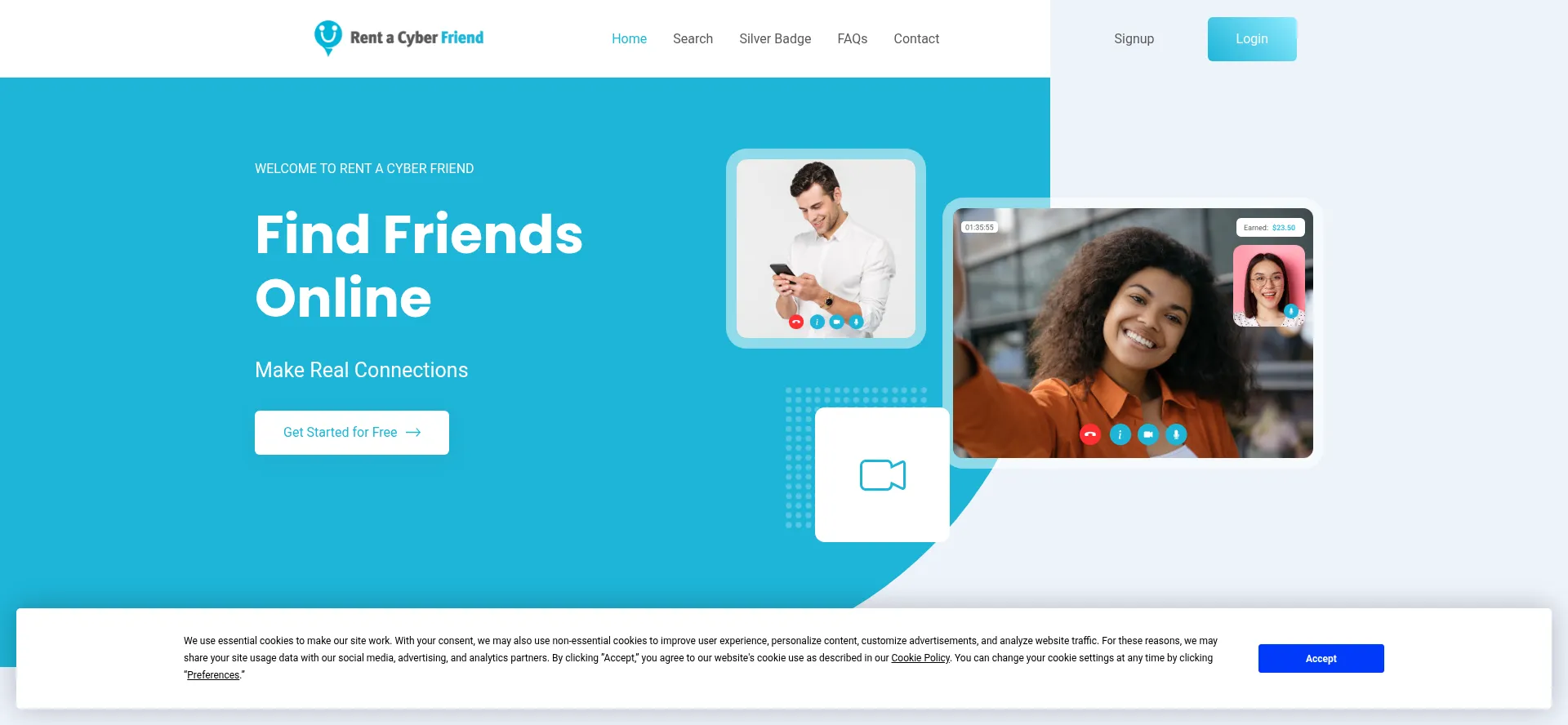 The website implements cookie consent mechanisms in compliance with privacy regulations such as GDPR or CCPA. This demonstrates that rentacyberfriend.com adheres to data protection standards and provides users with control over personal data collection practices.