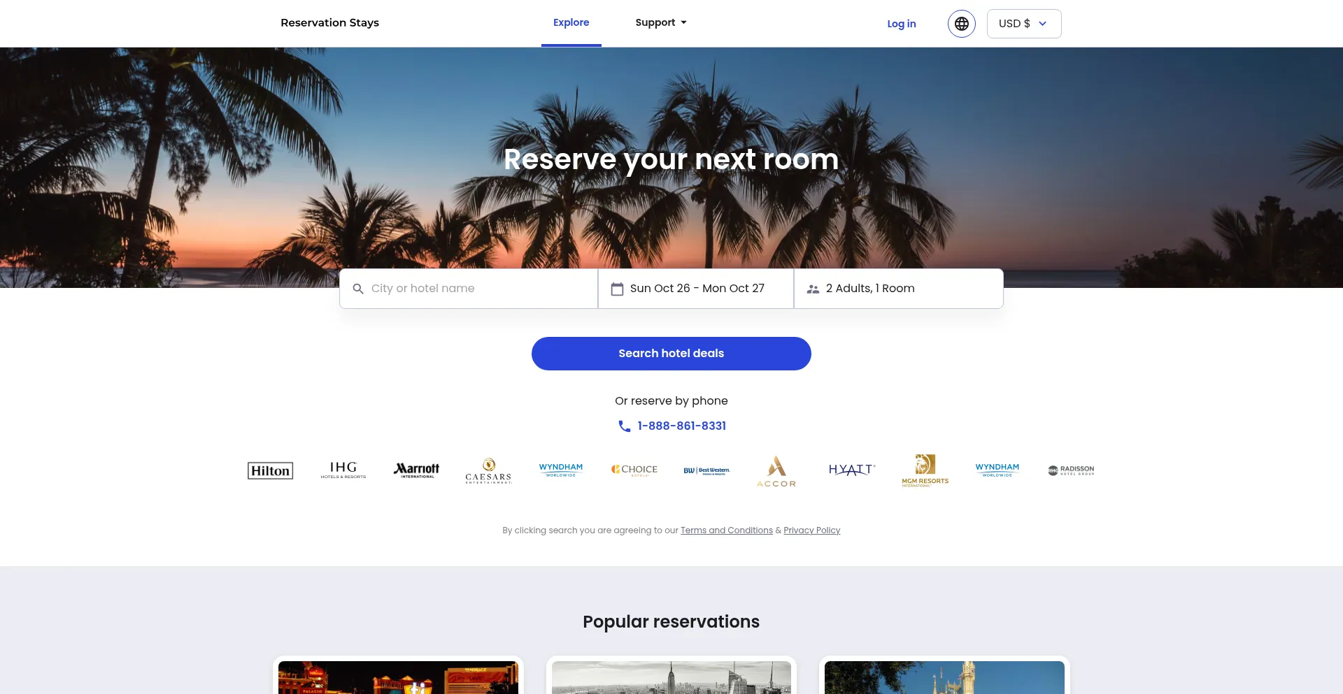 Explore the very best hotel deals and enjoy up to 50% off your next hotel reservation! Book your trip today and save big with Reservation Stays.