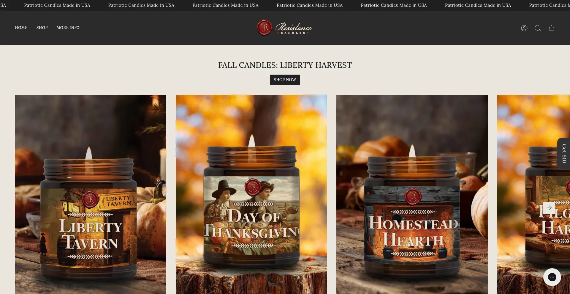 Resistance Candles offers handcrafted, American-made candles inspired by 1776, liberty, and faith. Bold scents. Historic stories. Freedom you can light.