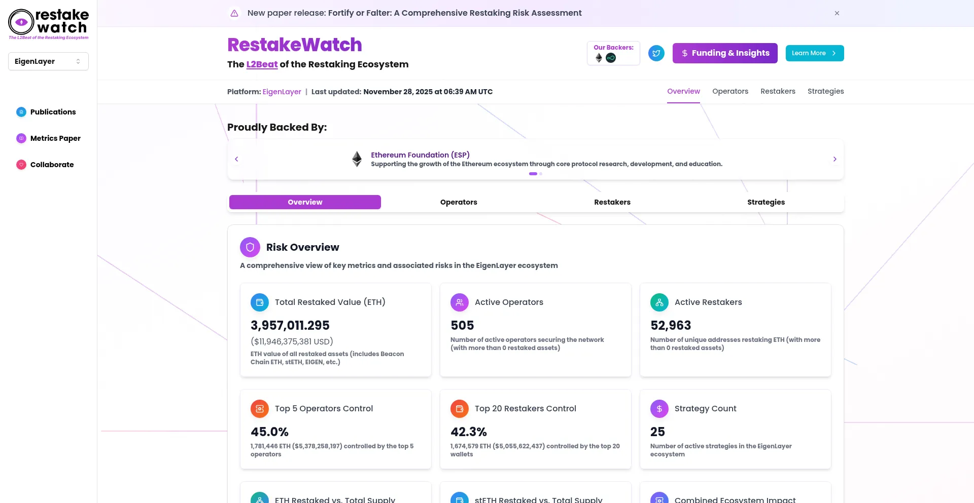 Independent watchdog for restaking. Monitor operator concentration and analyze risks in the restaking ecosystem.