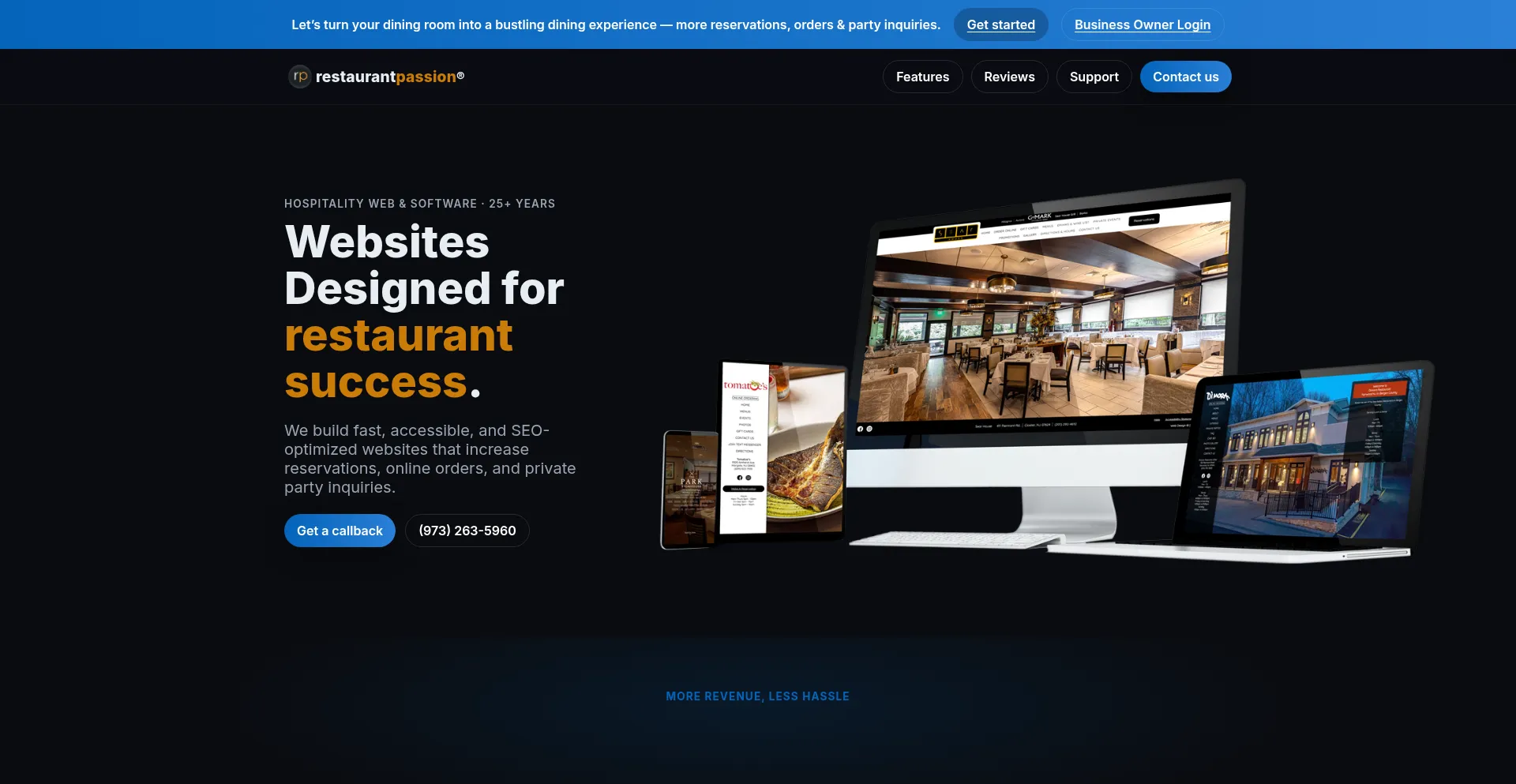 Boost reservations, online orders & private party inquiries with Restaurant Passion. 25+ years building SEO-optimized websites for restaurants.