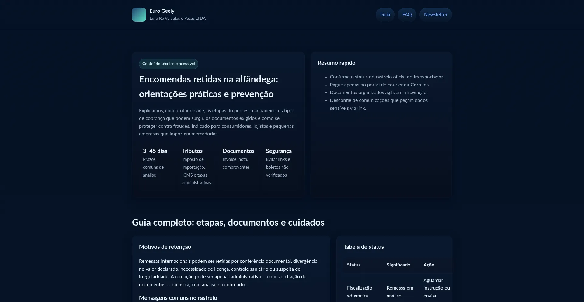 Guia completo e imparcial sobre encomendas retidas na alfândega: prazos, documentos, tributos, como proceder e como evitar fraudes. Conteúdo voltado a consumidores e pequenas ...