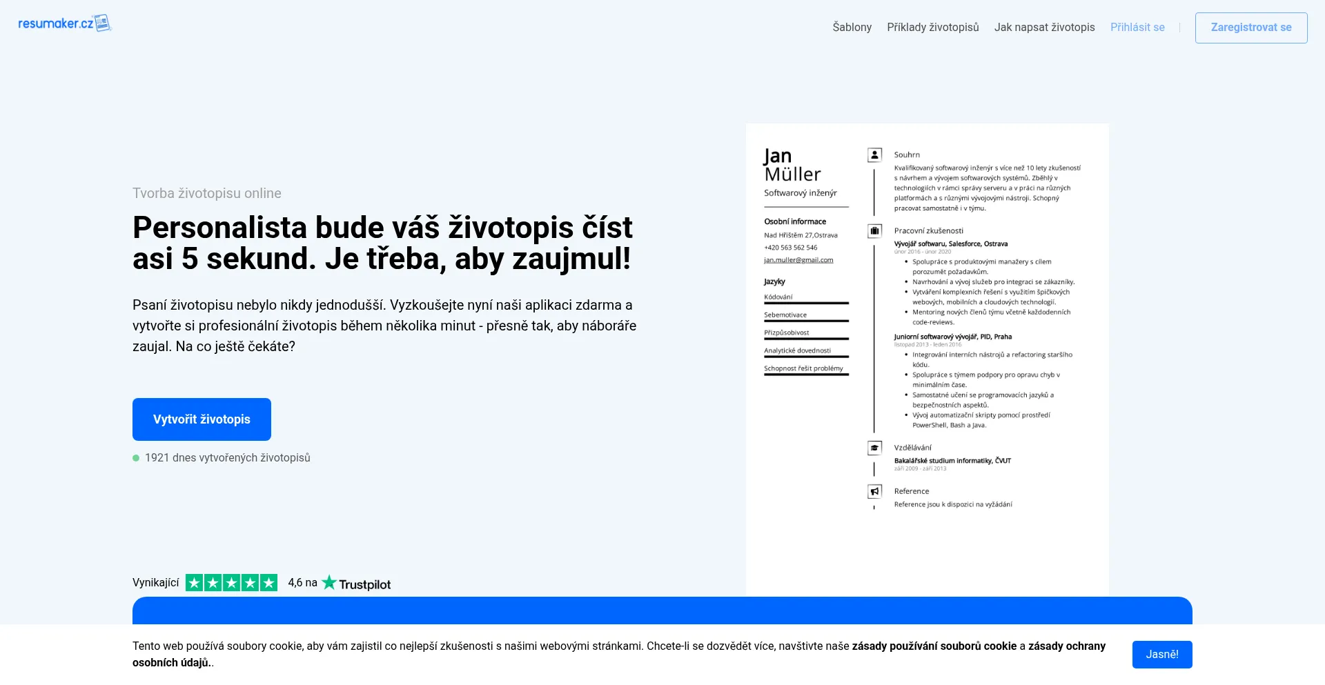 Vytvořte si dokonalý životopis | Bezplatný nástroj pro tvorbu životopisů | Resumaker.cz