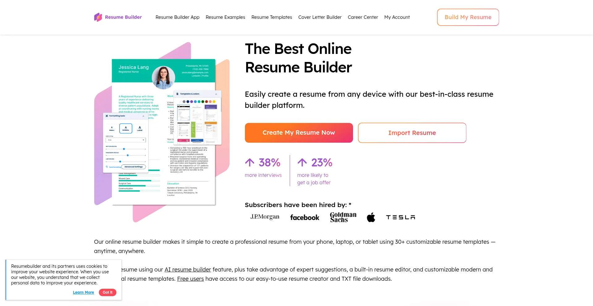 The resumebuilder.com website employs search engine optimization (SEO) techniques to improve its visibility and ranking in search engine results pages (SERPs).