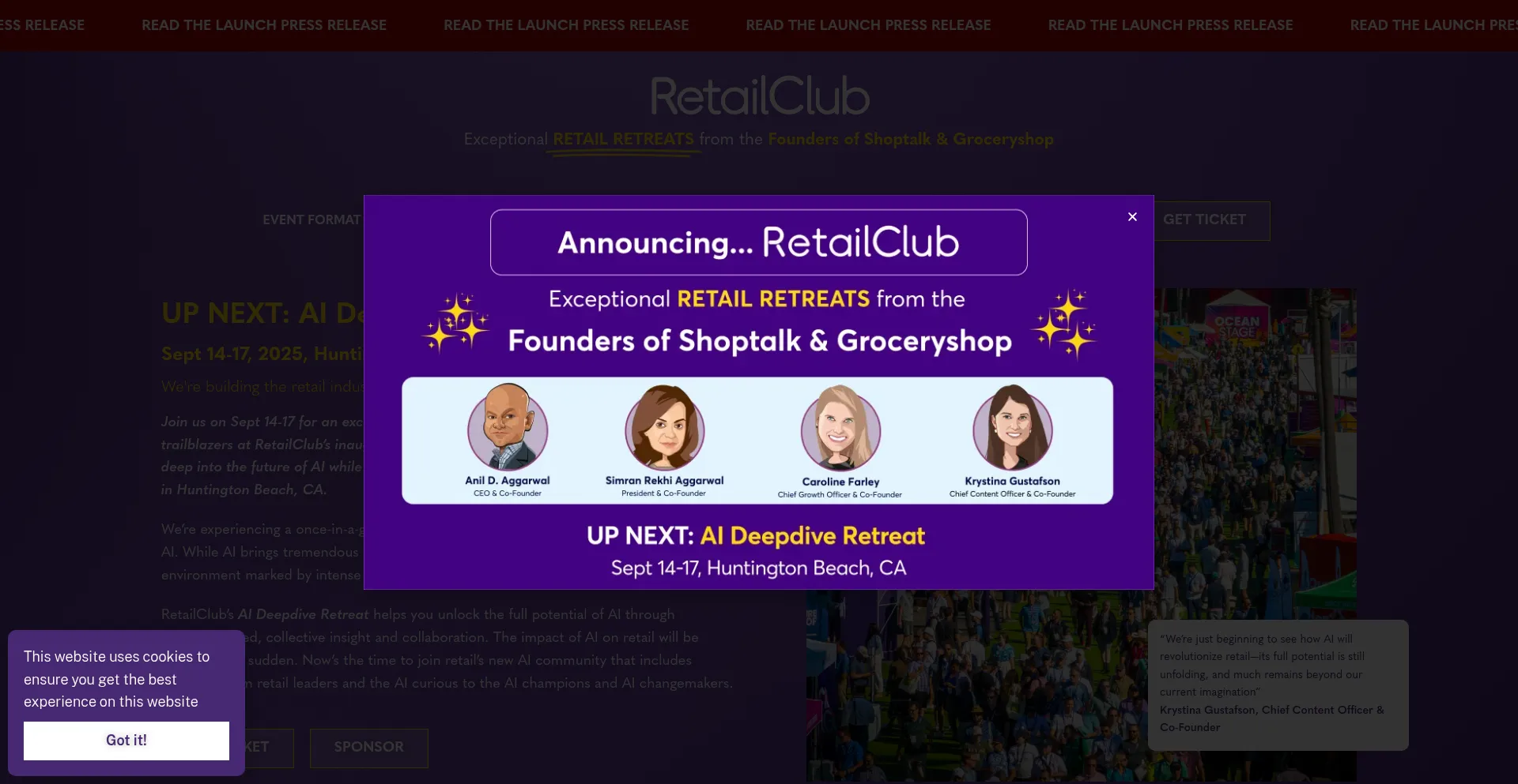 The retailclub.com website uses Google Tag Manager to add and update tracking tags on its website.