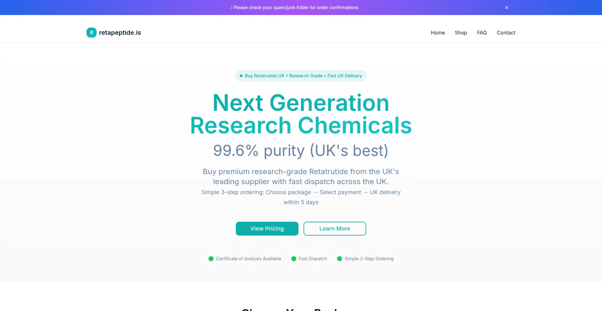 If you own Retapeptide.is, we'd love to hear from you. If you'd like to challenge the trust score assigned, we're happy to take a closer look. You can write to us legal(at)gridinsoft.com. However, please be prepared to provide proof of your business's legitimacy. Introduce yourself with your real name. Please note, we never charge website owners for reviews or reconsideration requests. For more information, please review our Disclaimer.