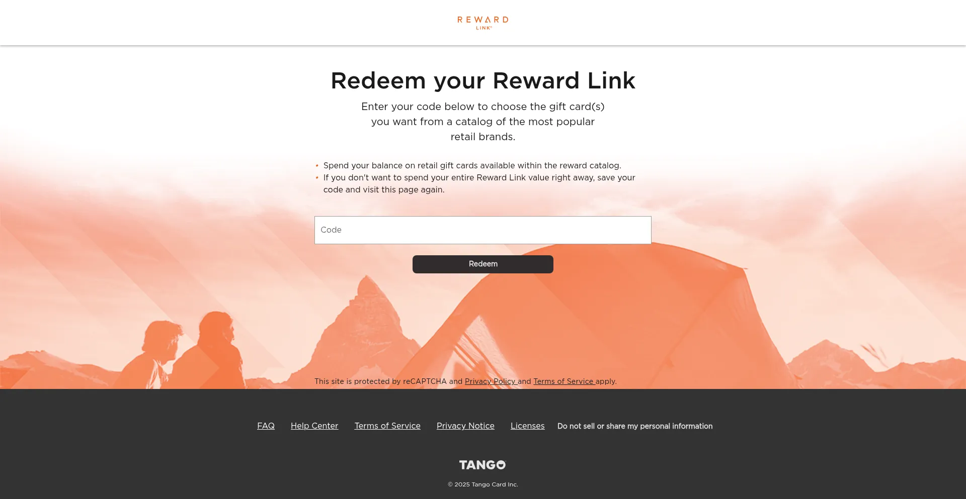 Enter your code below to choose the gift card(s) you want from a catalog of the most popular retail brands.