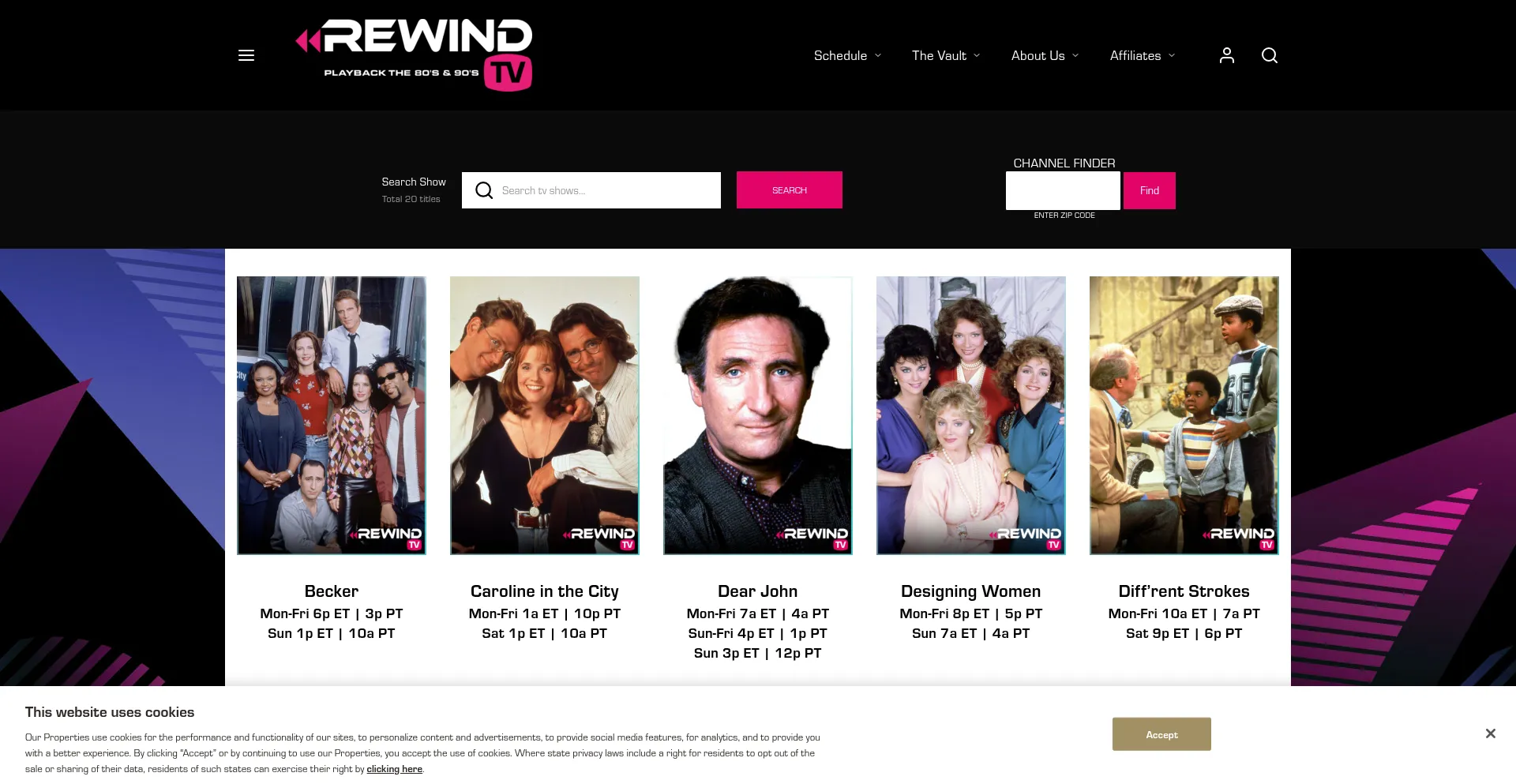 The website implements cookie consent mechanisms in compliance with privacy regulations such as GDPR or CCPA. This demonstrates that rewindtv.com adheres to data protection standards and provides users with control over personal data collection practices.