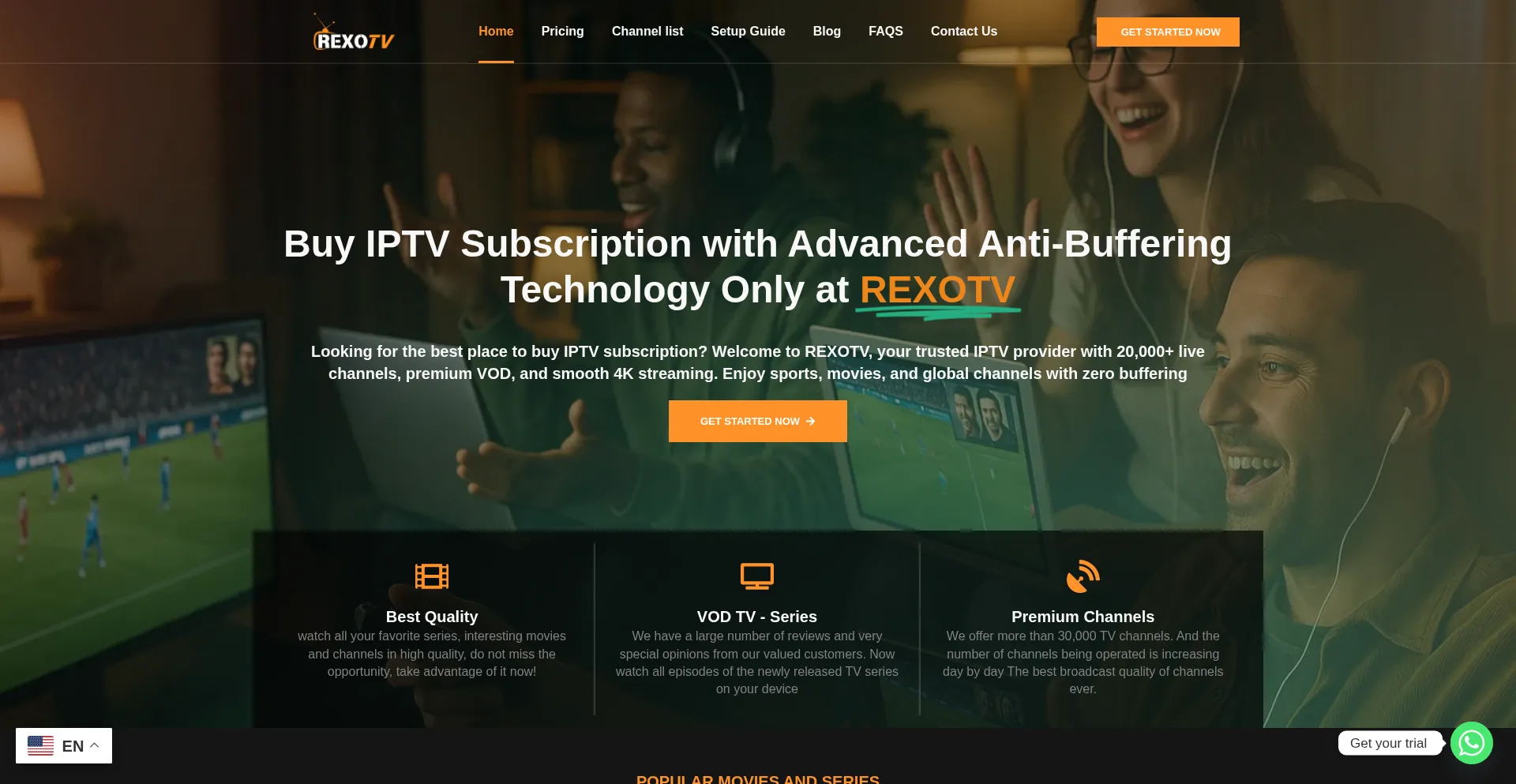Buy IPTV subscription from REXOTV and enjoy 20,000+ live channels, 50,000+ movies & series in full 4K. Fast, anti-buffering servers.