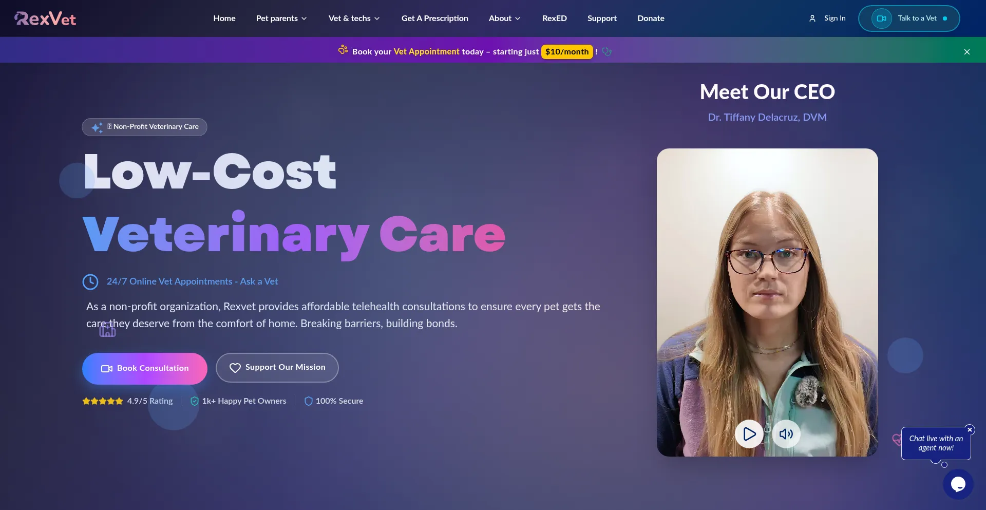 Get 24/7 online pet telehealth with RexVet. Affordable online veterinary care from your home, trusted by pet owners. 501(c)(3) non-profit. Book your vet now!