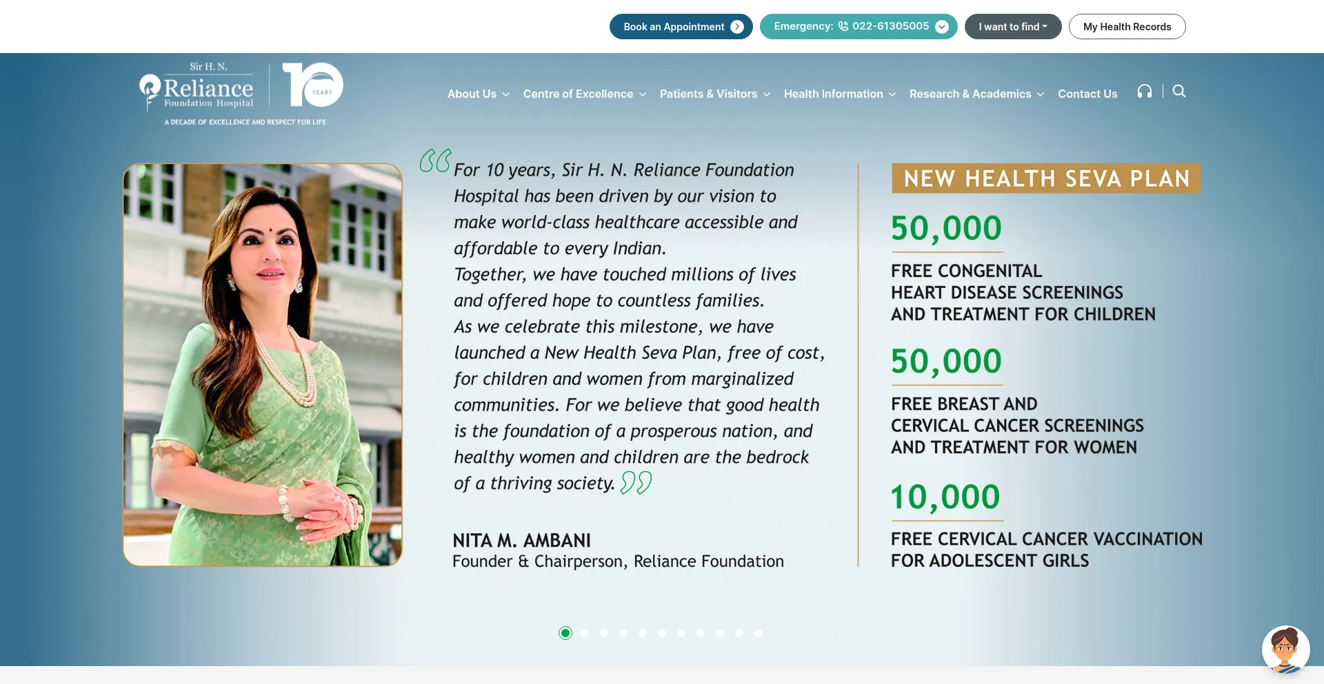 Find a doctor, book an appointment online, and explore specialty care at Mumbai's leading multi-specialty hospital, Sir H. N. Reliance Foundation Hospital and Research Centre.