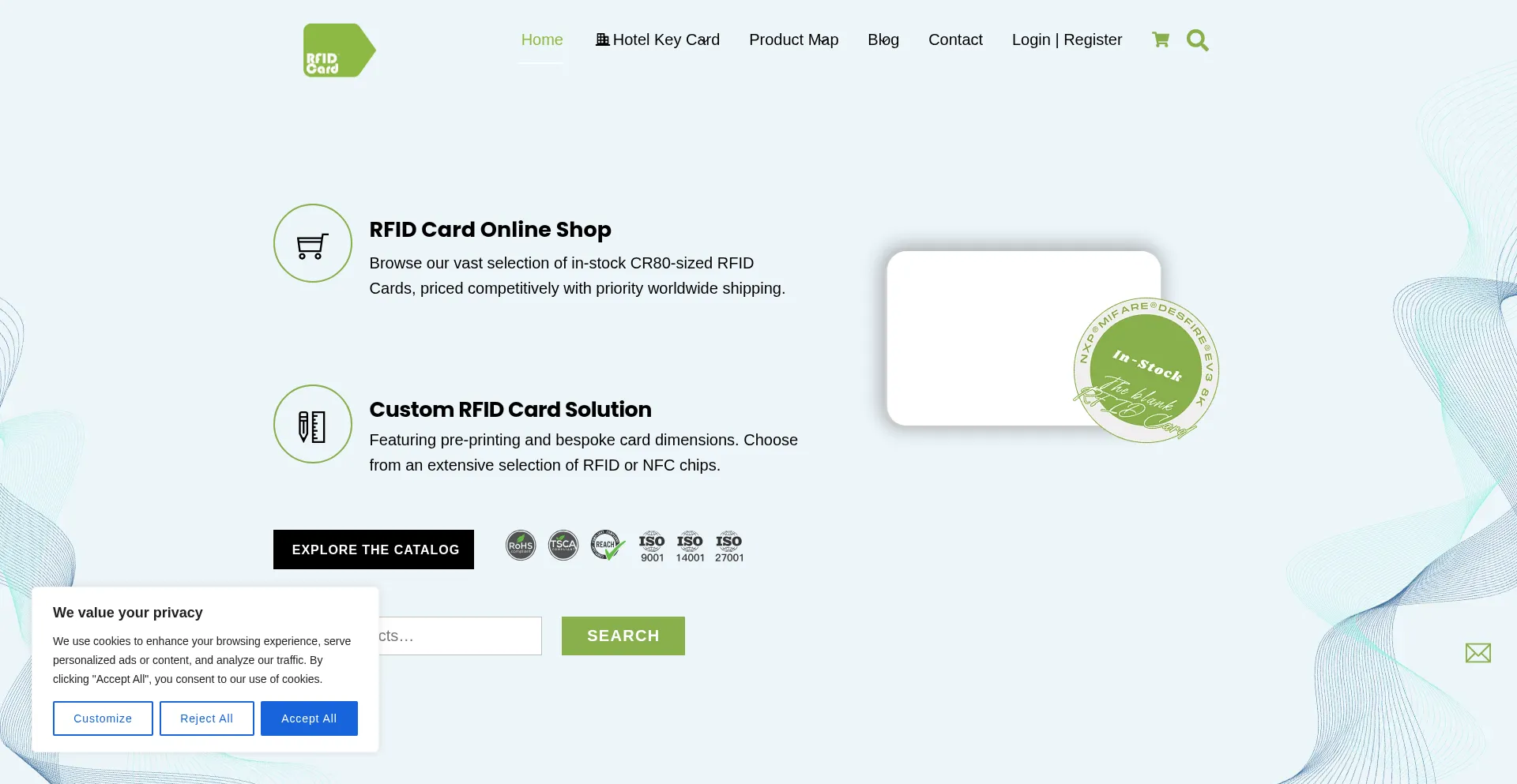 The website implements cookie consent mechanisms in compliance with privacy regulations such as GDPR or CCPA. This demonstrates that rfidcard.com adheres to data protection standards and provides users with control over personal data collection practices.