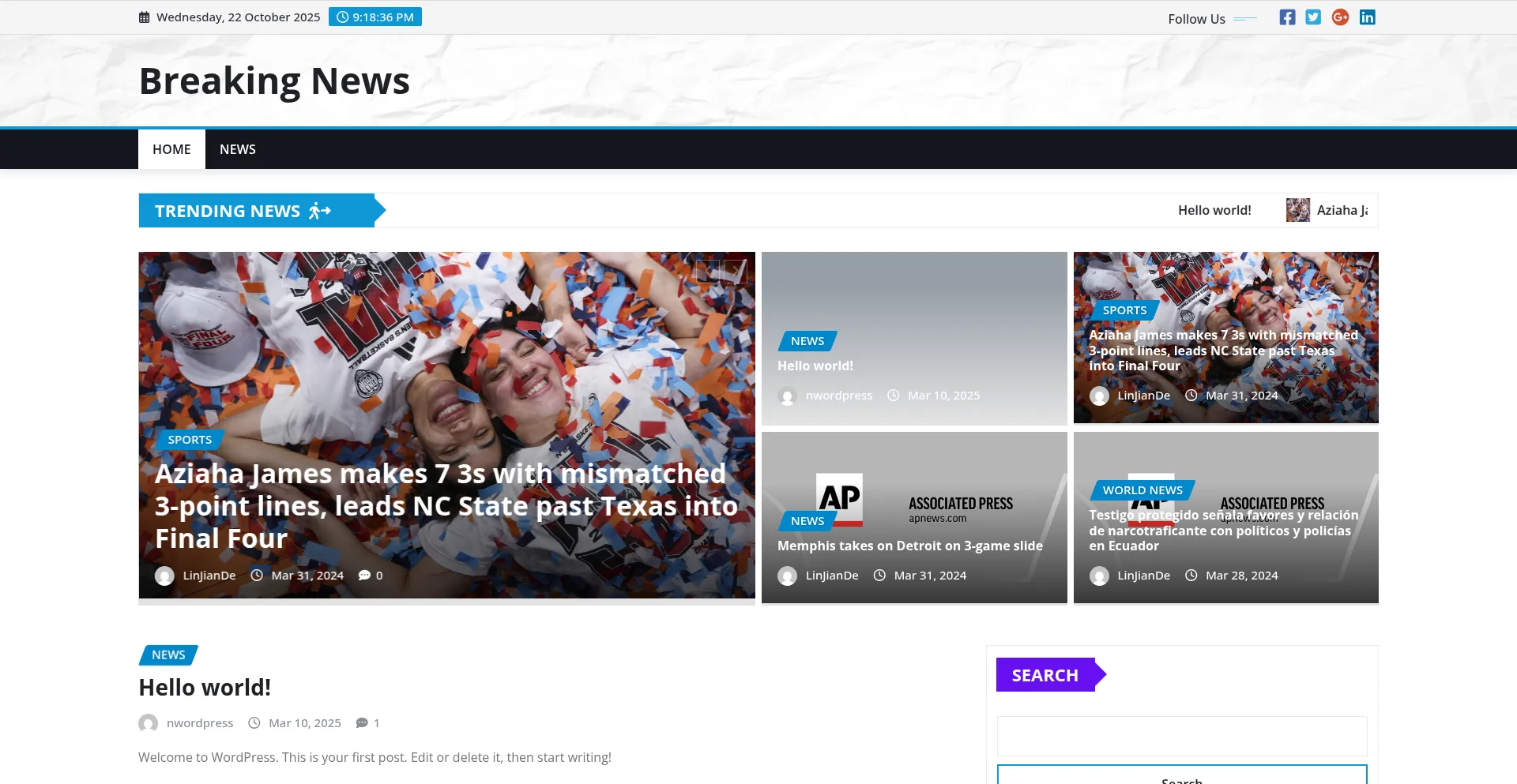 Sports, News Media, In Development, Wordpress Platform, SEO Optimization, Animate.css Framework, AI-generated Text