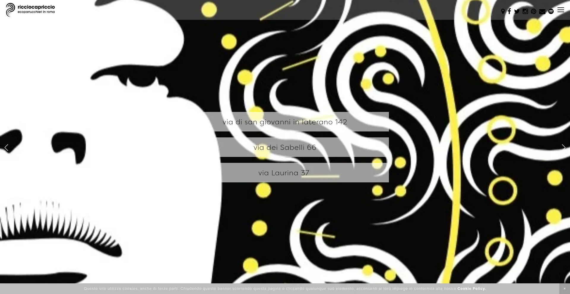 Ricciocapriccio è al centro di Roma, a un passo dal Colosseo. L'abbiamo inaugurato nel 2004 con una dichiarazione di indipendenza in mente: voglio una testa tutta mia.