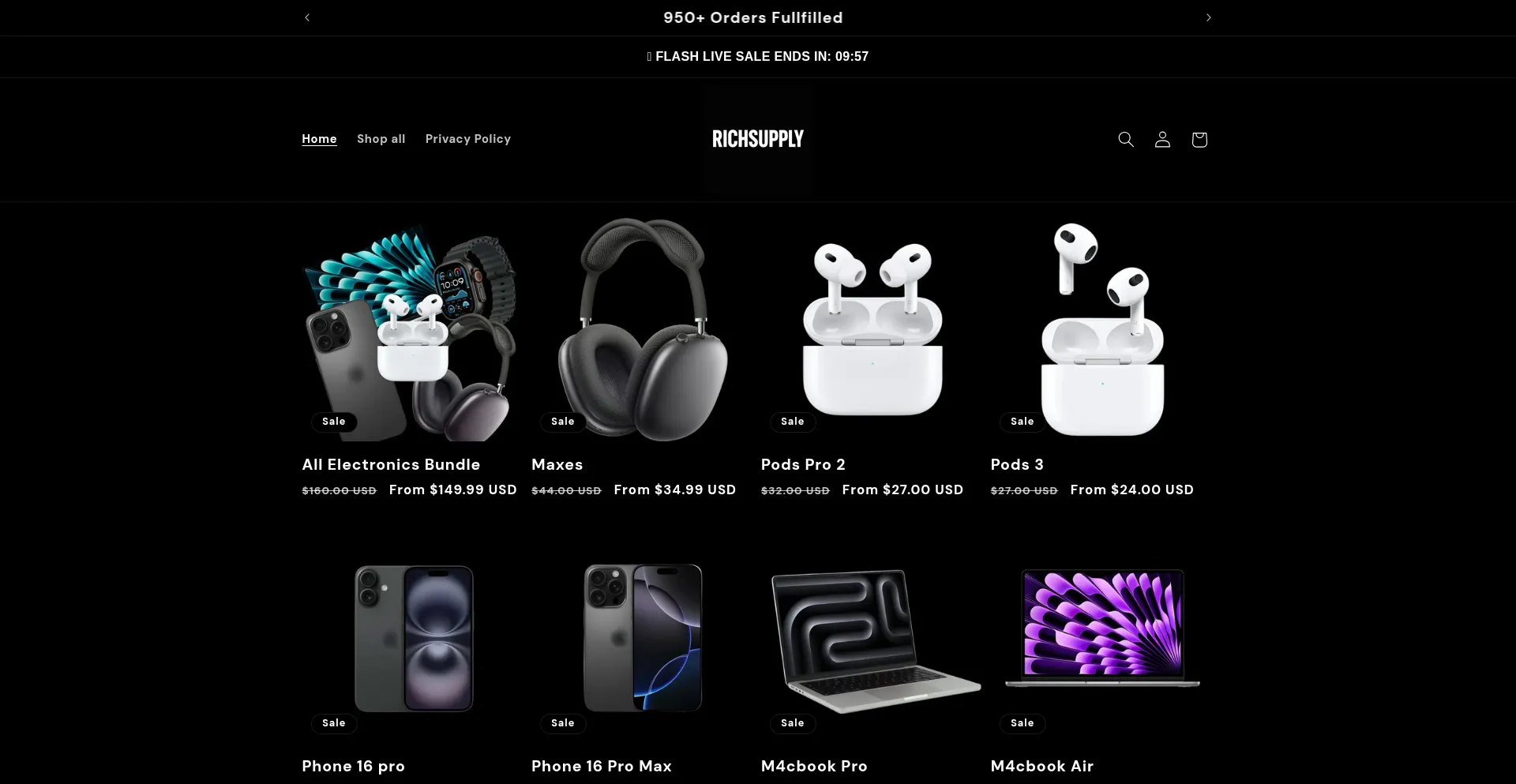 The website leverages popular product names and brands to attract traffic and generate user interest. These products may be offered through promotional campaigns or discount strategies designed to increase visitor engagement and conversion rates for richsupply.co.