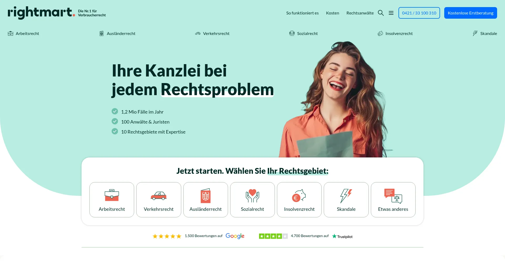 lll➤ rightmart – Die Nr. 1 für Verbraucherrecht ✓ Jährlich 1,2 Mio Verbraucher:innen ✓ Online: schnell & unkompliziert ✓