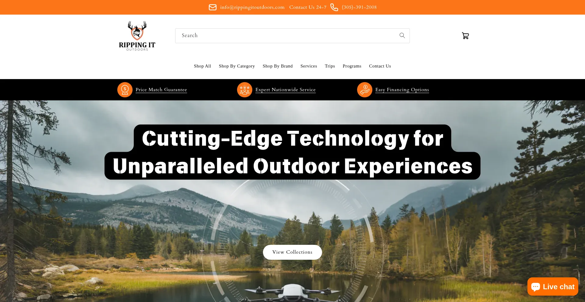 Analysis indicates that rippingitoutdoors.com operates as an e-commerce platform facilitating online transactions for goods or services. The website implements shopping cart functionality, payment processing systems, and product catalog features typical of commercial retail operations.