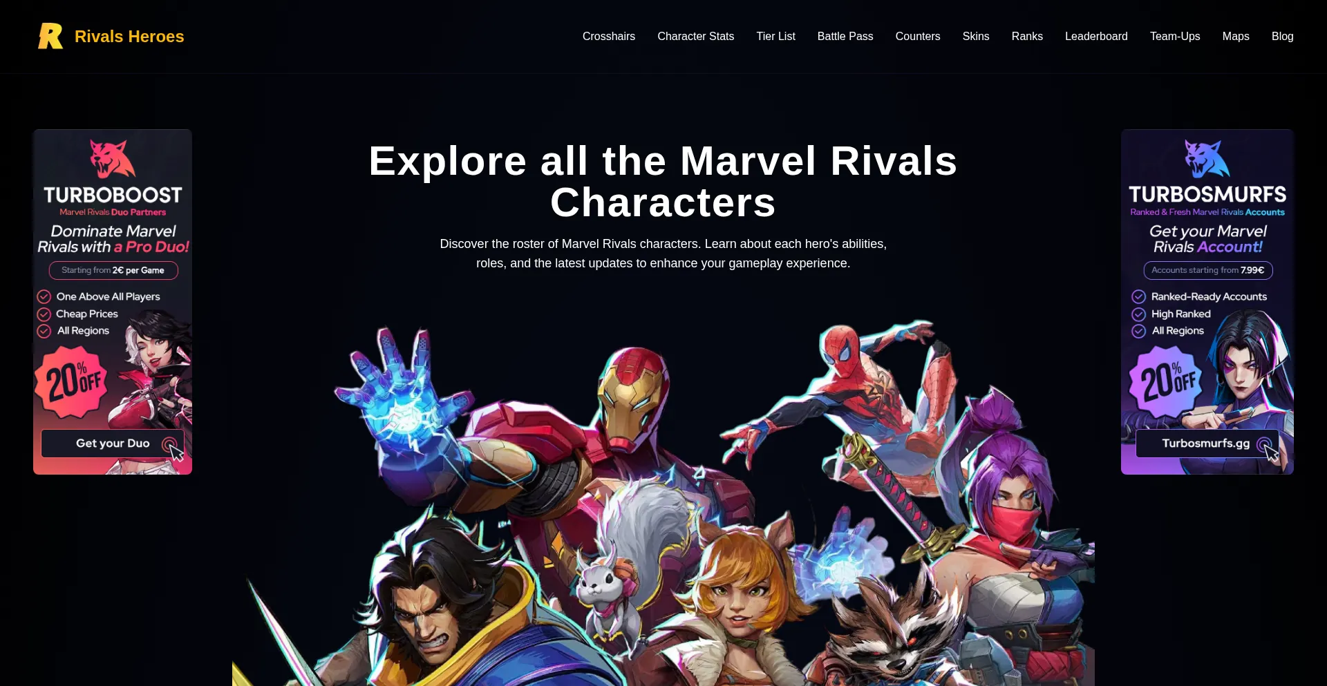 Information about all Marvel Rivals Characters. Release Dates, Live Tier List, Cosmetics, Team-Ups and much more, find everything about your favorite Hero.