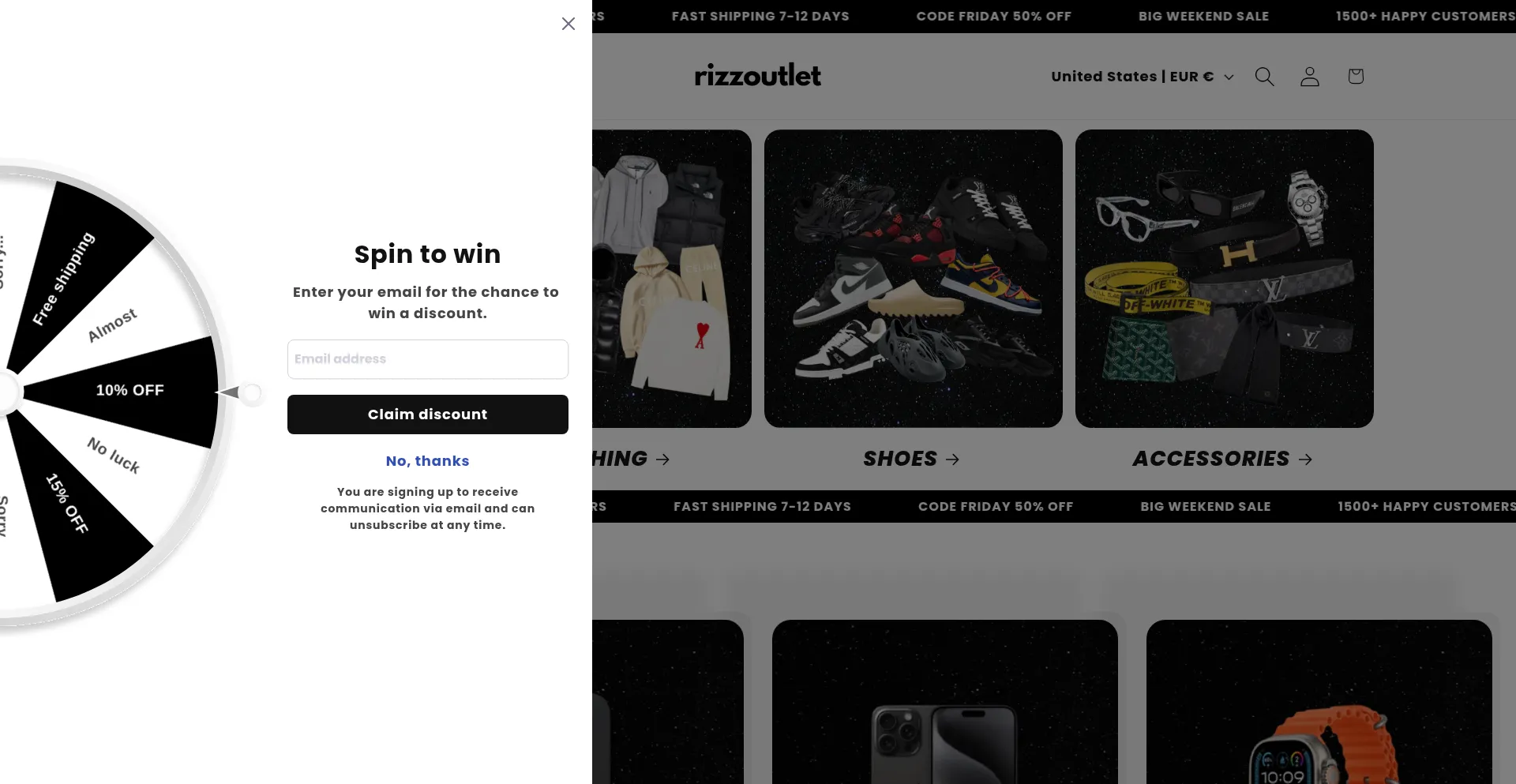 Our analyzer determines that website rizzoutlet.com is using Shopify CMS. Shopify is a popular e-commerce platform, powering around 4.4% of websites globally.
