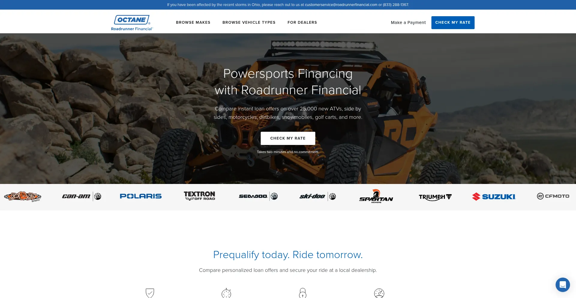 Roadrunner Financial is a powersports and outdoor power equipment lender offering financing to prime and subprime buyers. Get offers with no credit impact.