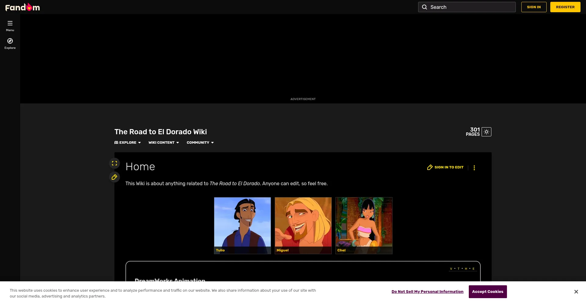 The website implements cookie consent mechanisms in compliance with privacy regulations such as GDPR or CCPA. This demonstrates that roadtoeldorado.fandom.com adheres to data protection standards and provides users with control over personal data collection practices.