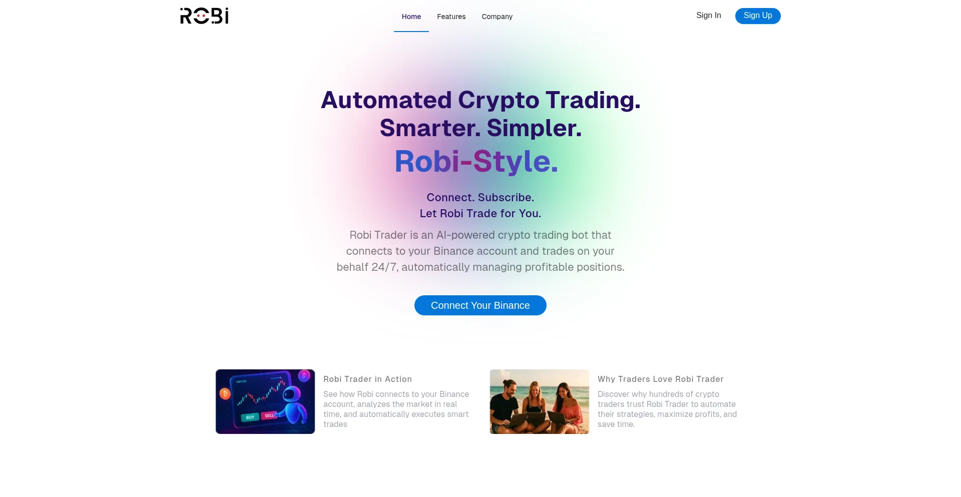 Robi Trader is an AI-powered crypto trading bot that connects to your Binance account and trades on your behalf 24/7, automatically opening profitable positions.