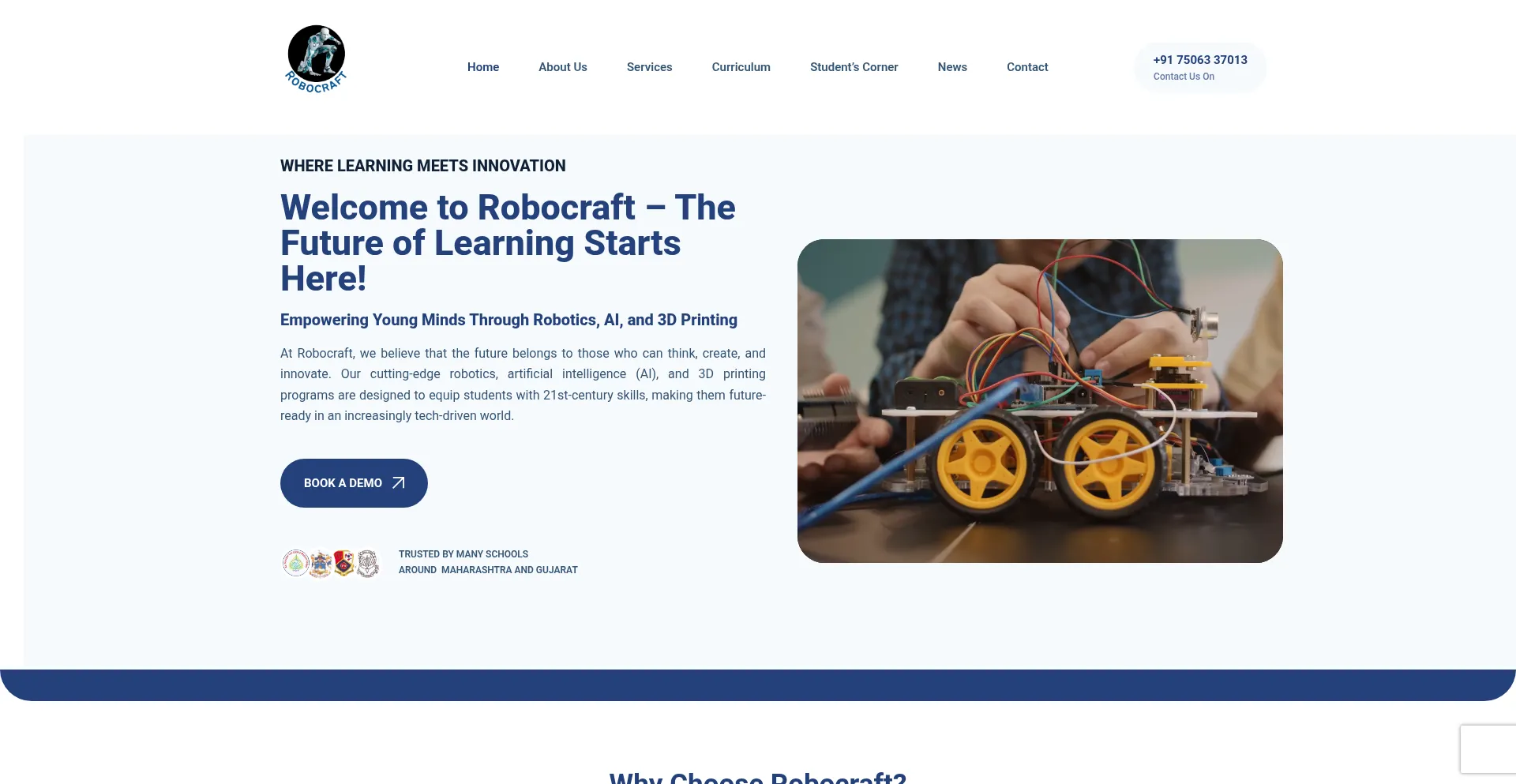 The robocraft.in website contains incomplete elements including placeholder content, unfinished features, or development artifacts, indicating ongoing construction or maintenance. This may reflect inadequate quality assurance processes or premature deployment, potentially affecting site reliability and user experience.