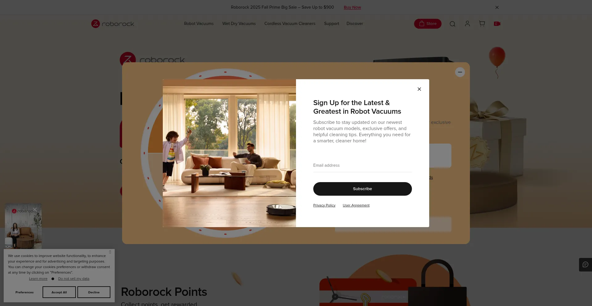 The website implements cookie consent mechanisms in compliance with privacy regulations such as GDPR or CCPA. This demonstrates that roborock.com adheres to data protection standards and provides users with control over personal data collection practices.