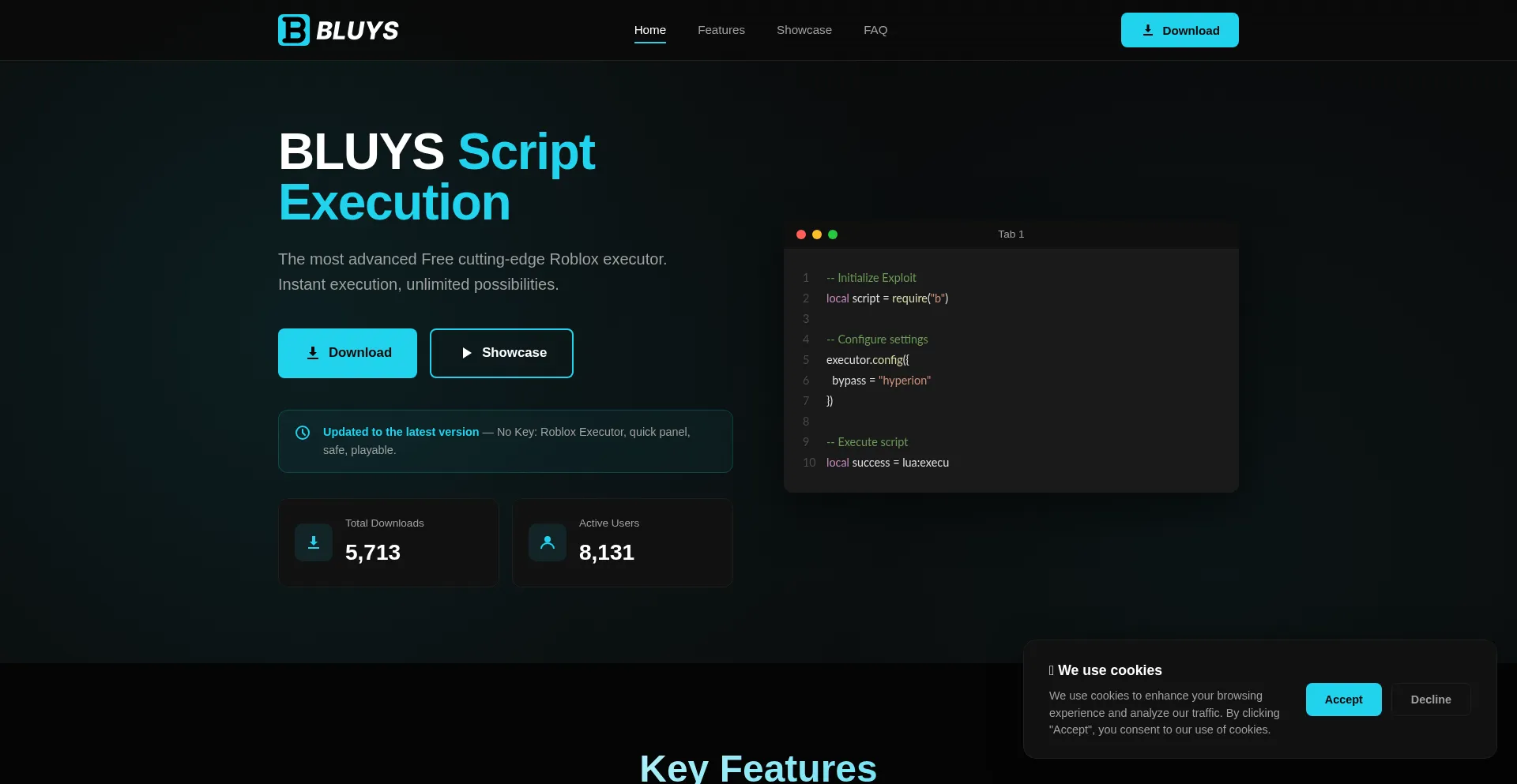 BLUYS Script Execution - Advanced Roblox Script Executor. Free, secure, and powerful. No key required.
