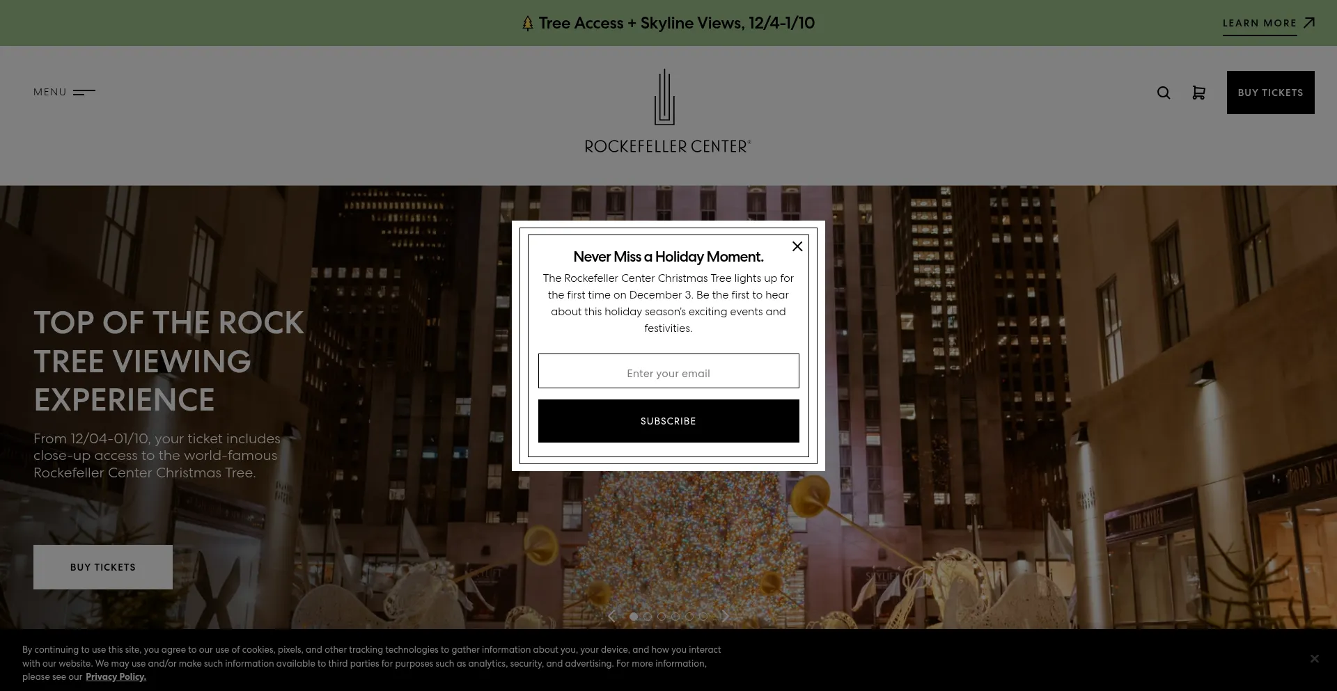 The website implements cookie consent mechanisms in compliance with privacy regulations such as GDPR or CCPA. This demonstrates that rockefellercenter.com adheres to data protection standards and provides users with control over personal data collection practices.