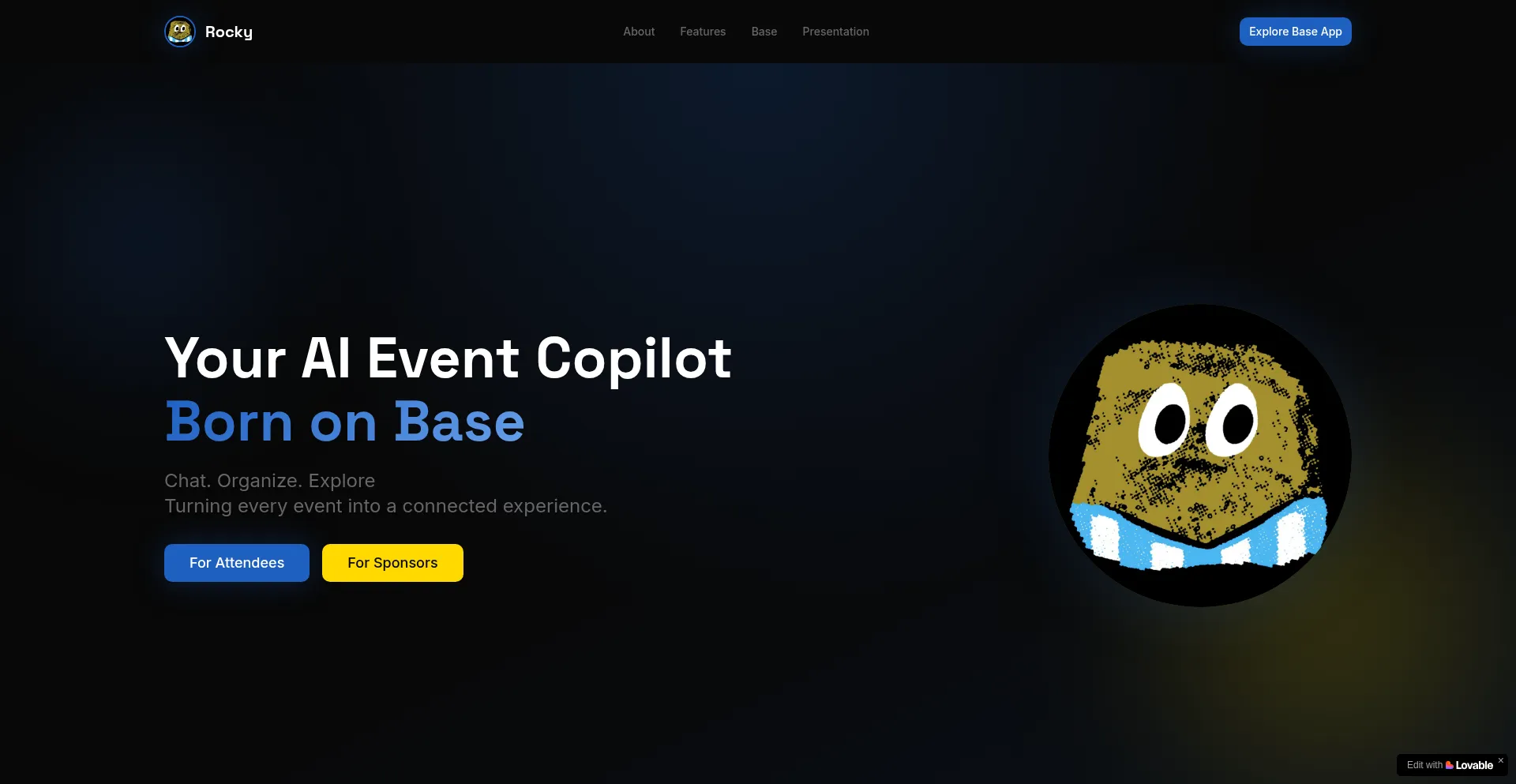 Rocky is an AI agent that helps event organizers and attendees manage events effortlessly through natural conversation. Built on Base blockchain.
