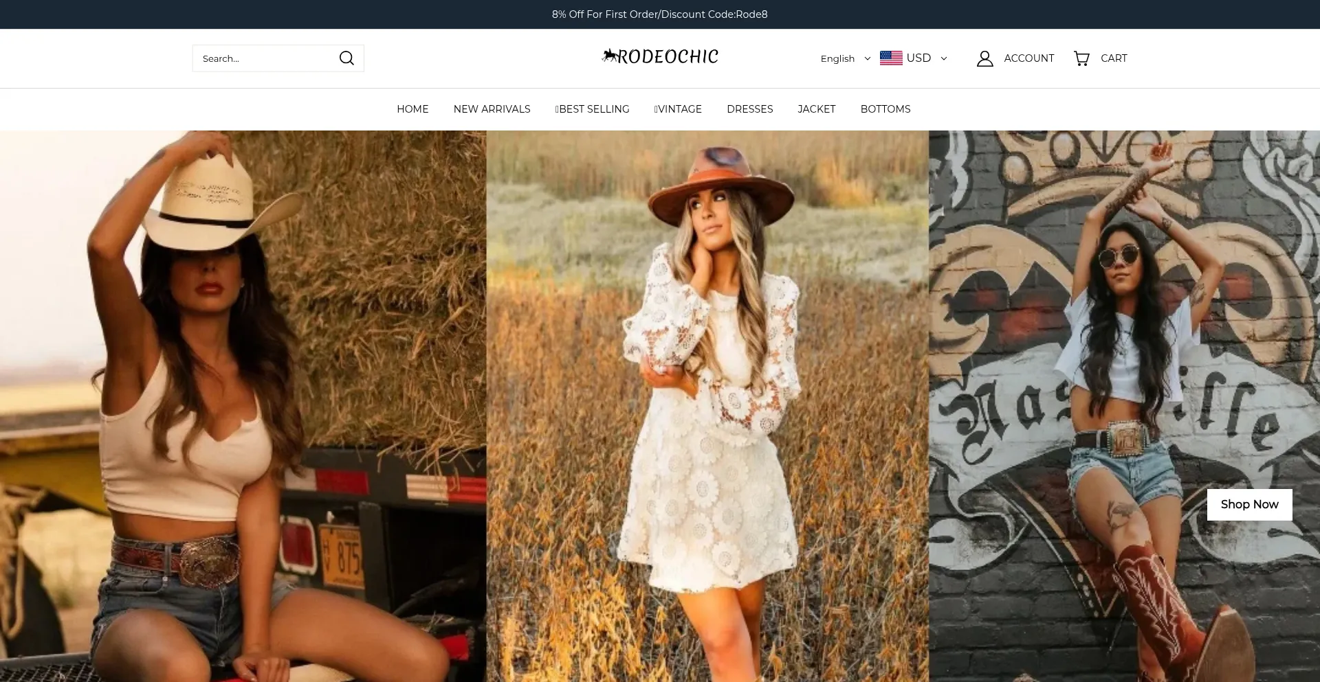 Analysis indicates that rodeochic.com operates as an e-commerce platform facilitating online transactions for goods or services. The website implements shopping cart functionality, payment processing systems, and product catalog features typical of commercial retail operations.