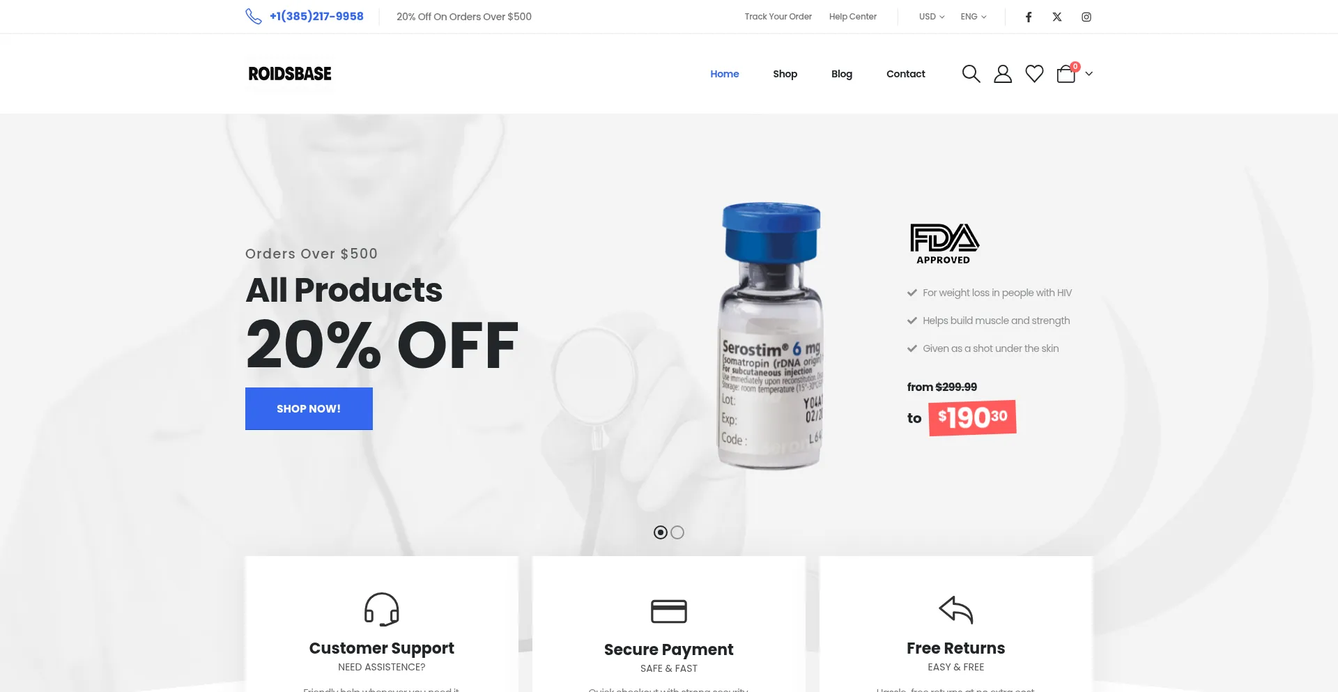 The website leverages popular product names and brands to attract traffic and generate user interest. These products may be offered through promotional campaigns or discount strategies designed to increase visitor engagement and conversion rates for roidsbase.com.