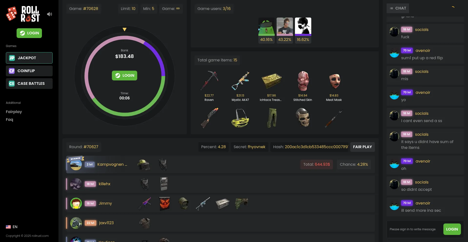 ROLLRUST | Jackpot | Rust Roulette Jackpot | ROLLRUST.COM