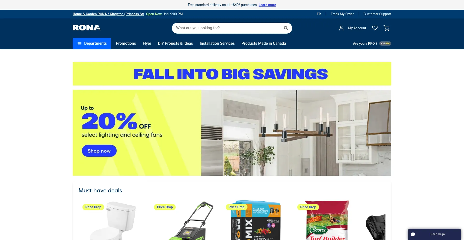 Analysis indicates that rona.ca operates as an e-commerce platform facilitating online transactions for goods or services. The website implements shopping cart functionality, payment processing systems, and product catalog features typical of commercial retail operations.