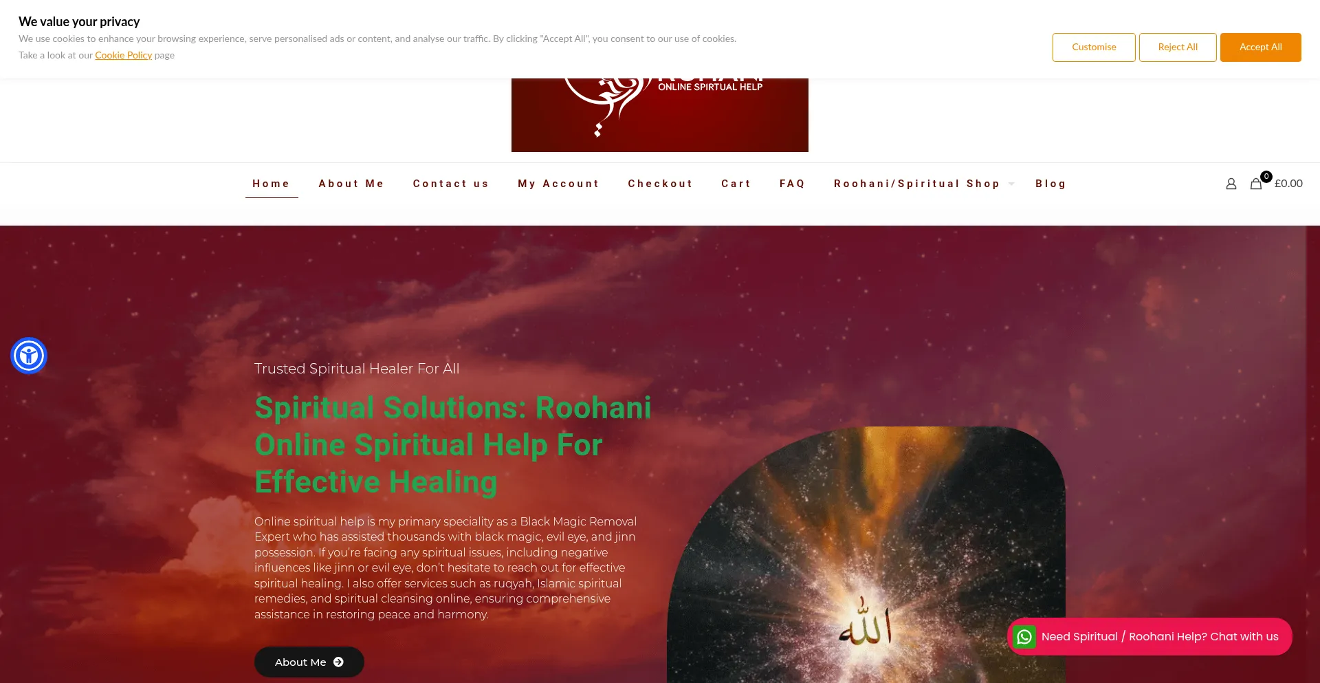 The website implements cookie consent mechanisms in compliance with privacy regulations such as GDPR or CCPA. This demonstrates that roohanionlinespiritualhelp.co.uk adheres to data protection standards and provides users with control over personal data collection practices.
