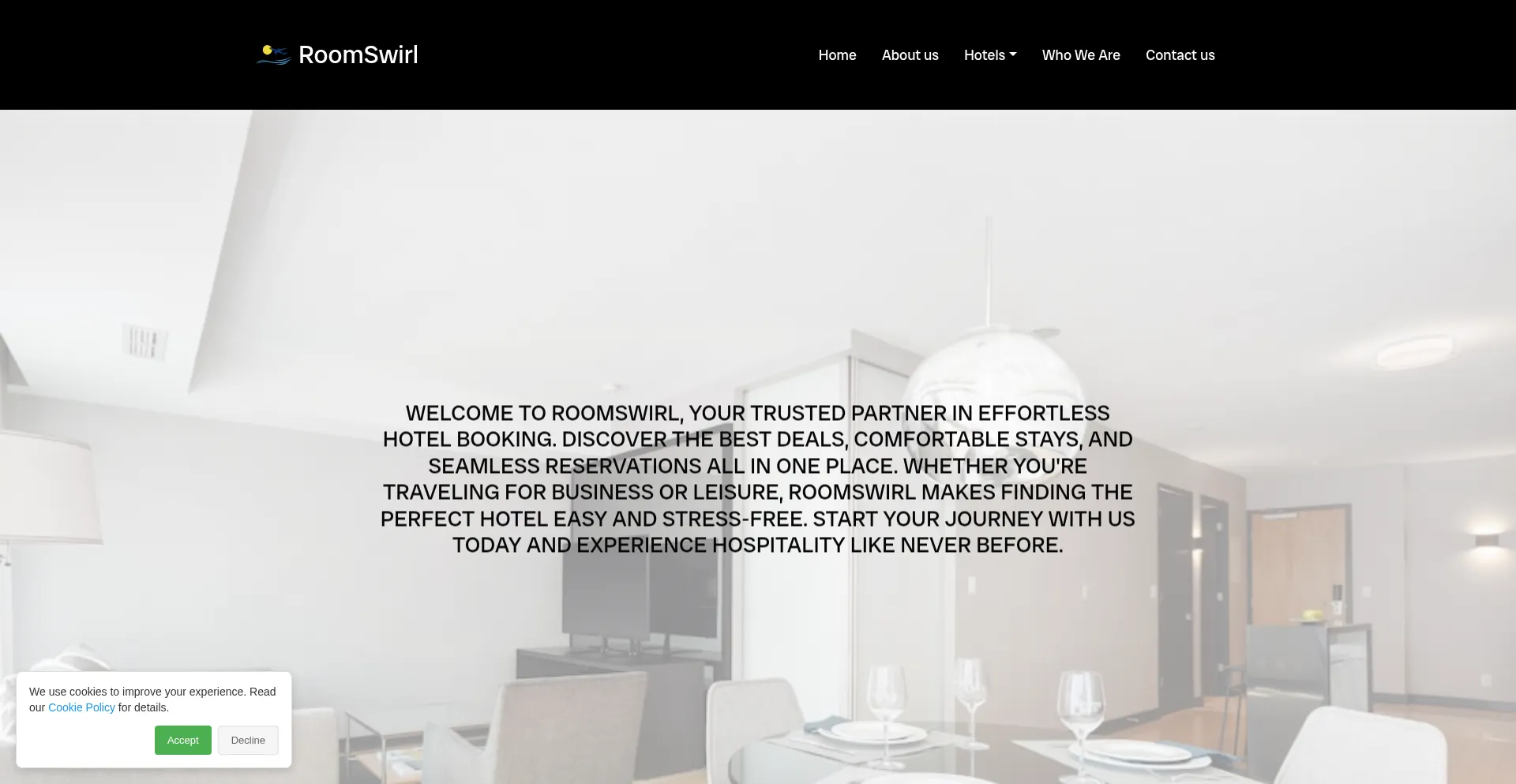 RoomSwirl is an innovative hotel booking service designed for those who value comfort, speed and simplicity. We understand
