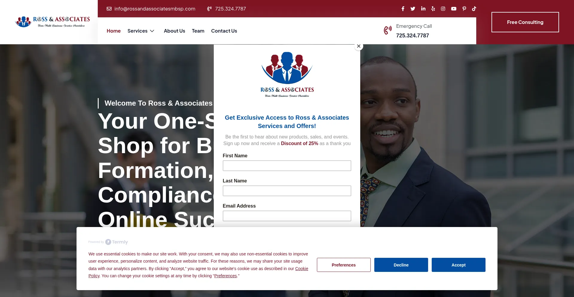 The website implements cookie consent mechanisms in compliance with privacy regulations such as GDPR or CCPA. This demonstrates that rossandassociatesmbsp.com adheres to data protection standards and provides users with control over personal data collection practices.