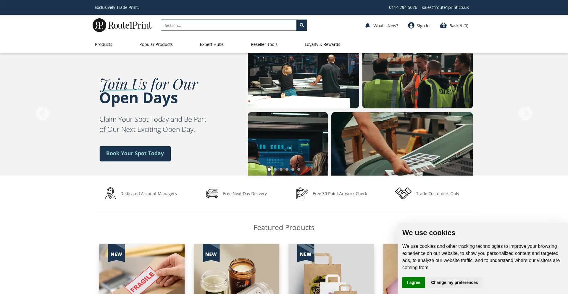 The website implements cookie consent mechanisms in compliance with privacy regulations such as GDPR or CCPA. This demonstrates that route1print.co.uk adheres to data protection standards and provides users with control over personal data collection practices.
