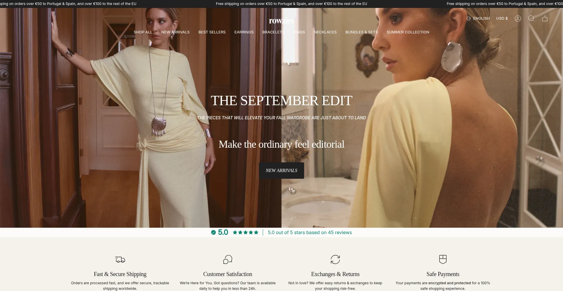 The rowzies.com website utilizes free e-commerce platform solutions, which may indicate cost-conscious operations but could also suggest limitations in security features, customer support, or advanced functionality compared to enterprise-grade solutions.