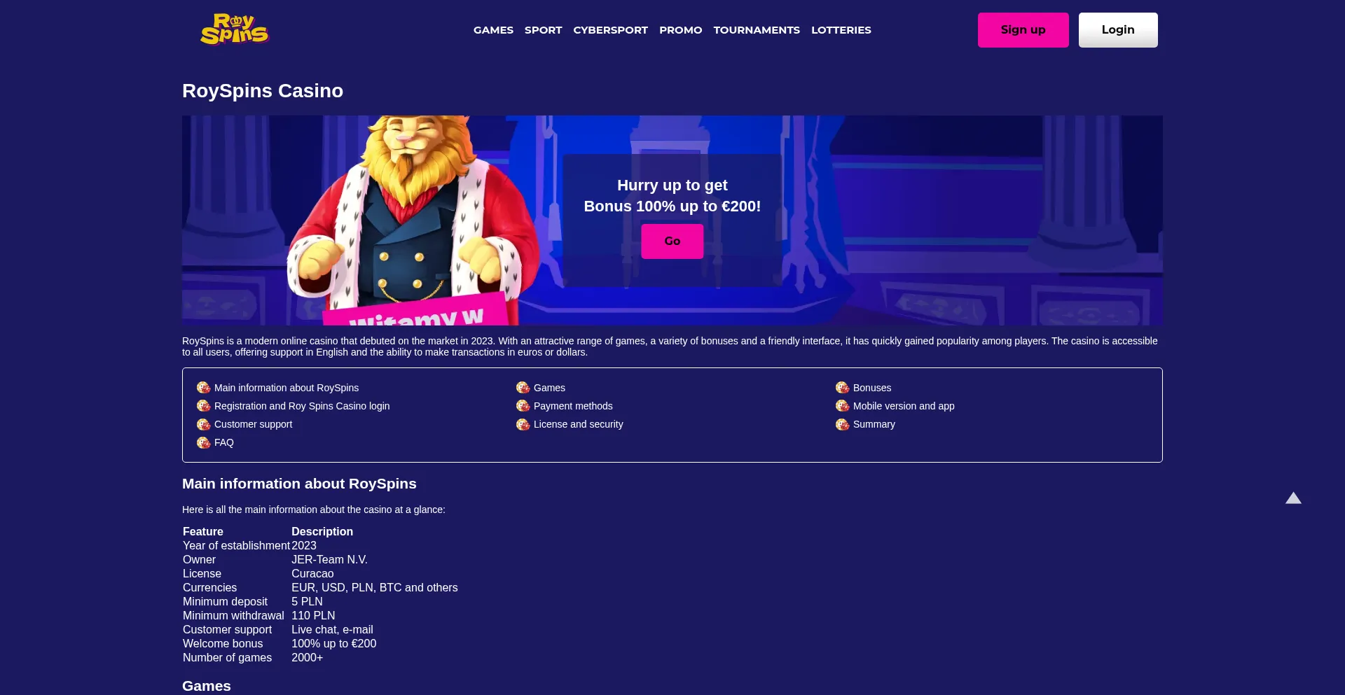 RoySpins Casino | Get 100% Bonus Up to €200 – Login