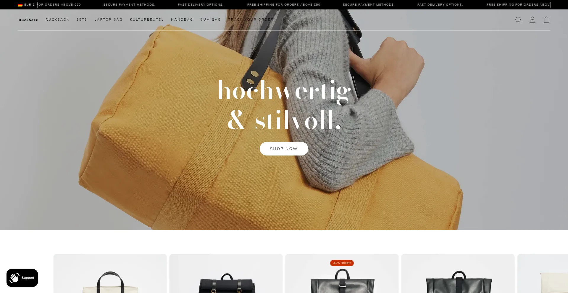 The rucksacc.com website utilizes free e-commerce platform solutions, which may indicate cost-conscious operations but could also suggest limitations in security features, customer support, or advanced functionality compared to enterprise-grade solutions.