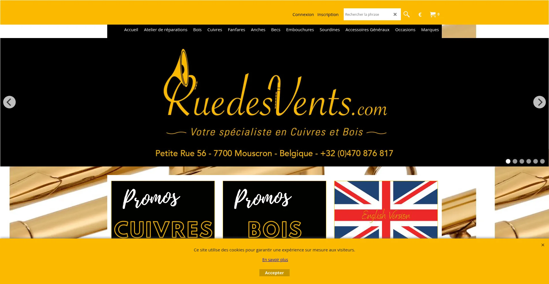 Rue des Vents : spécialiste trompettes, trombones, cors, flûtes, clarinettes, saxophones, hautbois et bassons