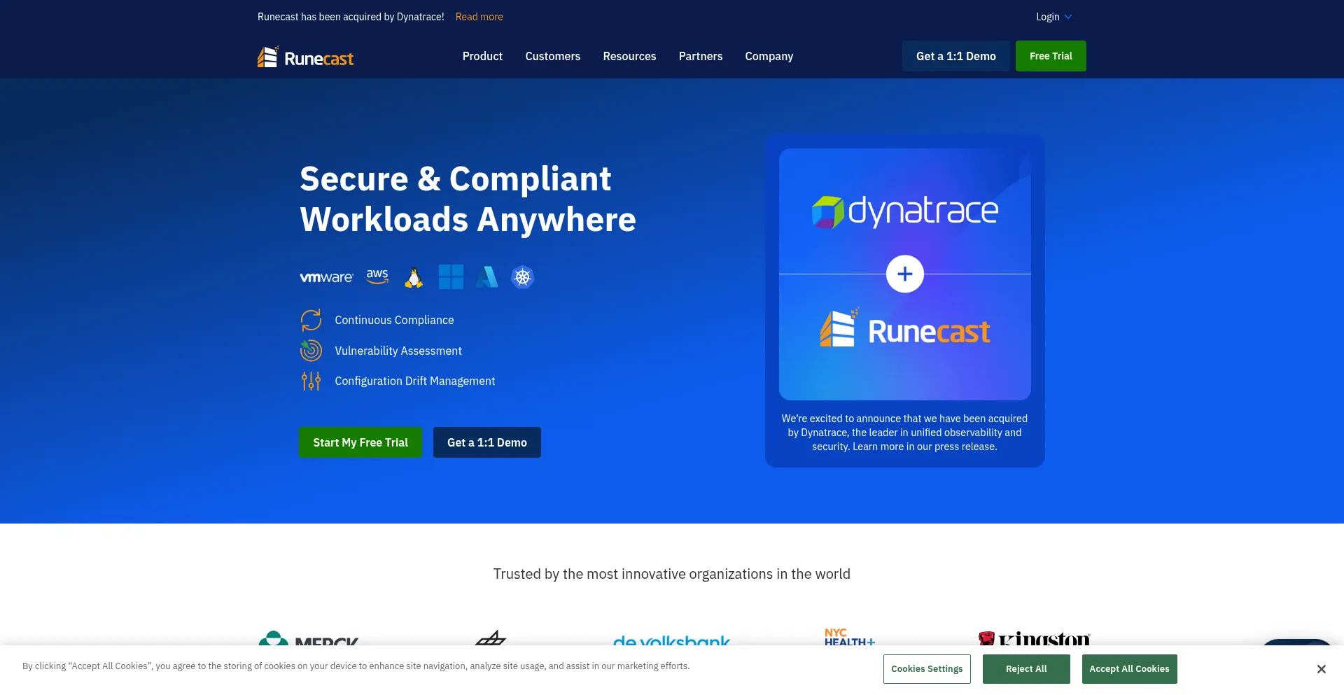 The website implements cookie consent mechanisms in compliance with privacy regulations such as GDPR or CCPA. This demonstrates that runecast.com adheres to data protection standards and provides users with control over personal data collection practices.