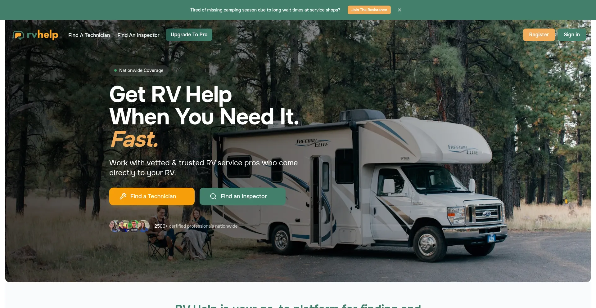 RV Help connects you with certified mobile RV technicians and inspectors nationwide. Get expert RV repairs, maintenance, and inspections right at your campsite from RVTAA & NRVI...