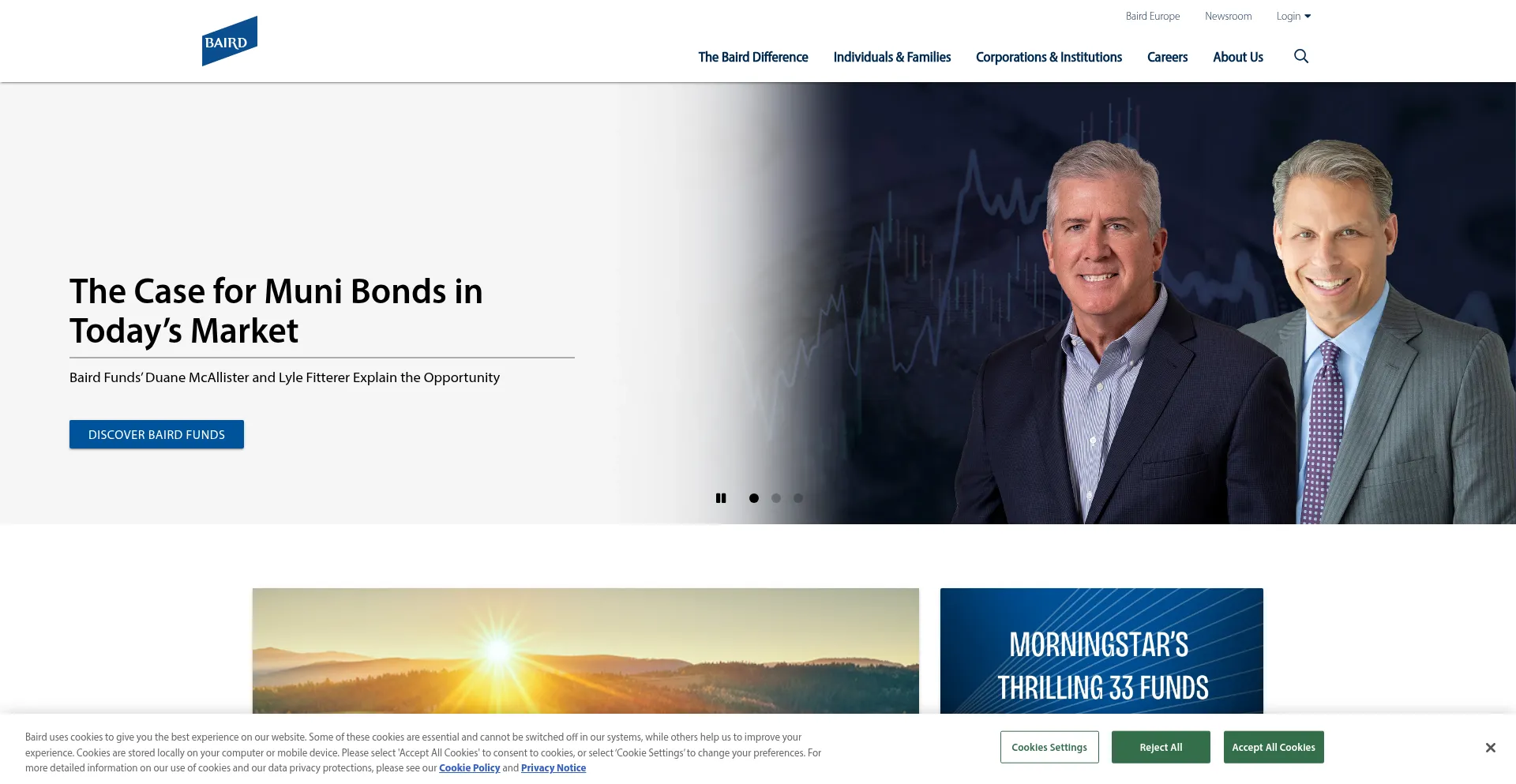 The website implements cookie consent mechanisms in compliance with privacy regulations such as GDPR or CCPA. This demonstrates that rwbaird.com adheres to data protection standards and provides users with control over personal data collection practices.