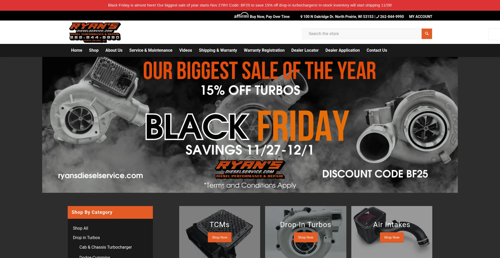 Analysis indicates that ryansdieselservice.com operates as an e-commerce platform facilitating online transactions for goods or services. The website implements shopping cart functionality, payment processing systems, and product catalog features typical of commercial retail operations.
