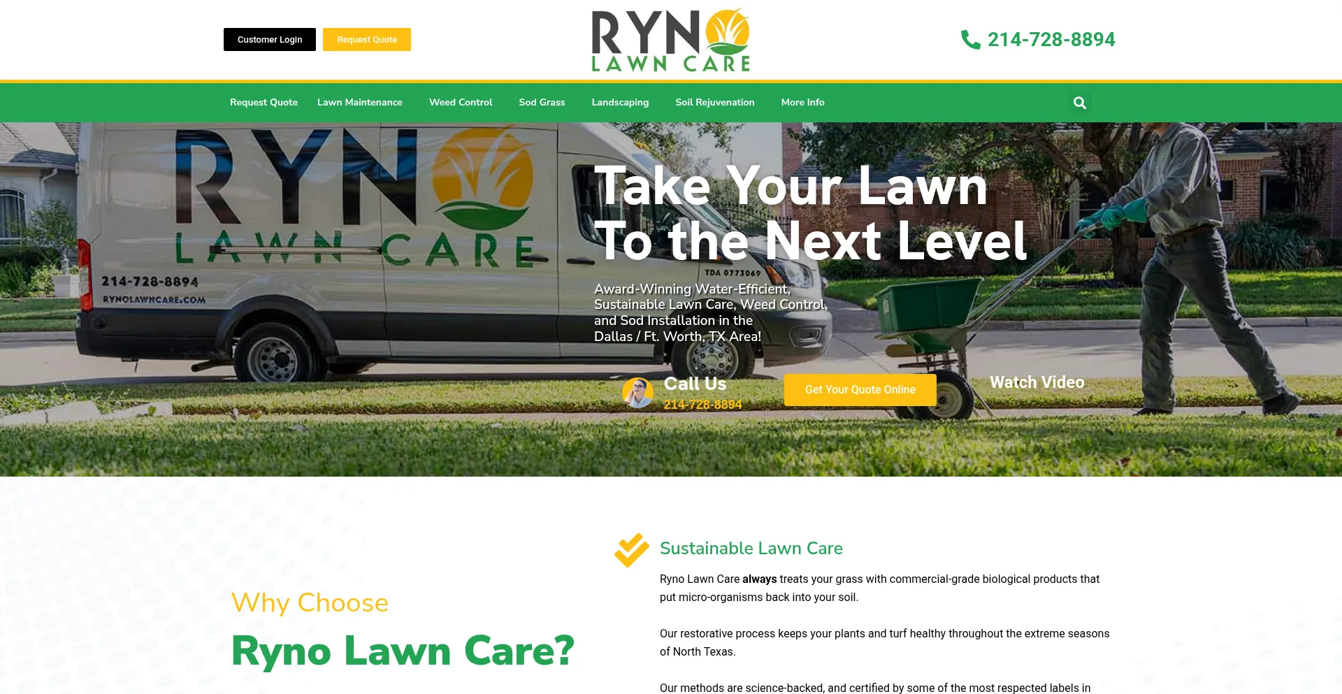 Since 2009, Ryno Lawn Care's Complete Programs Continue to Bring the Best Lawns to Neighborhoods across DFW. Keeping Lawns Green.