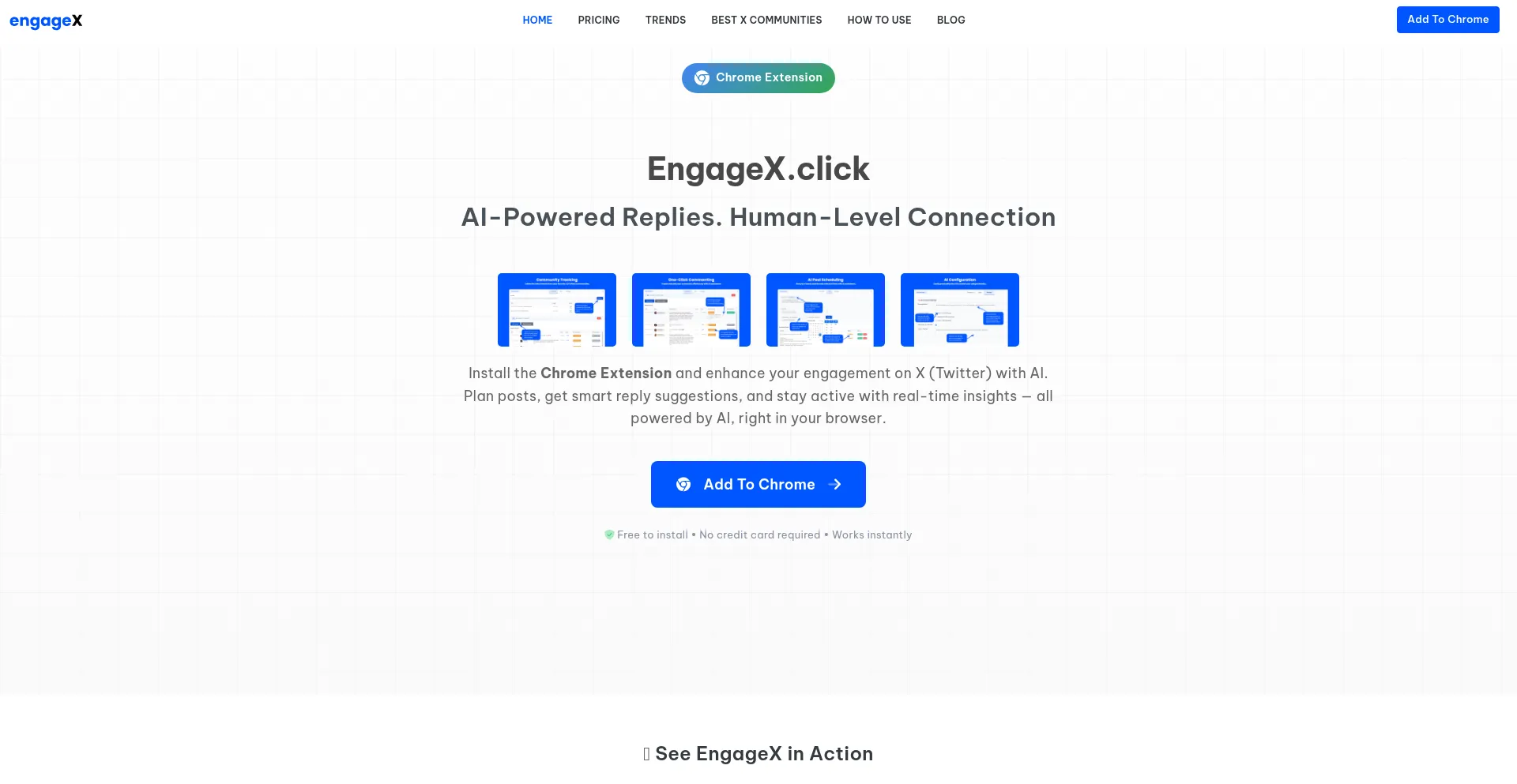 Install the Chrome Extension and enhance your engagement on X (Twitter) with AI. Plan posts, get smart reply suggestions, and stay active with real-time insights — all powered...