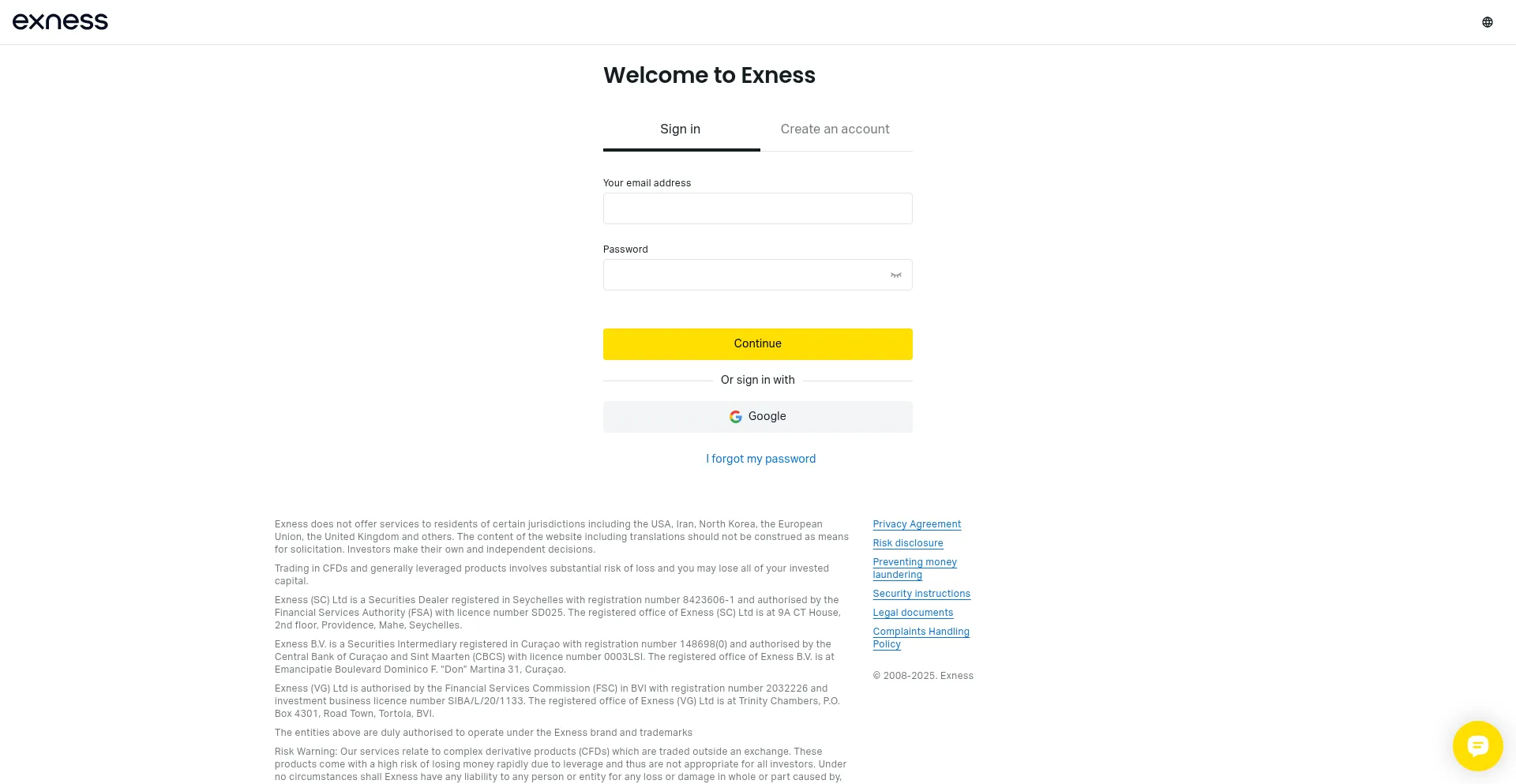 Exness Login page. Log in to your Exness account and access your personal area for an efficient and secure trading experience.
